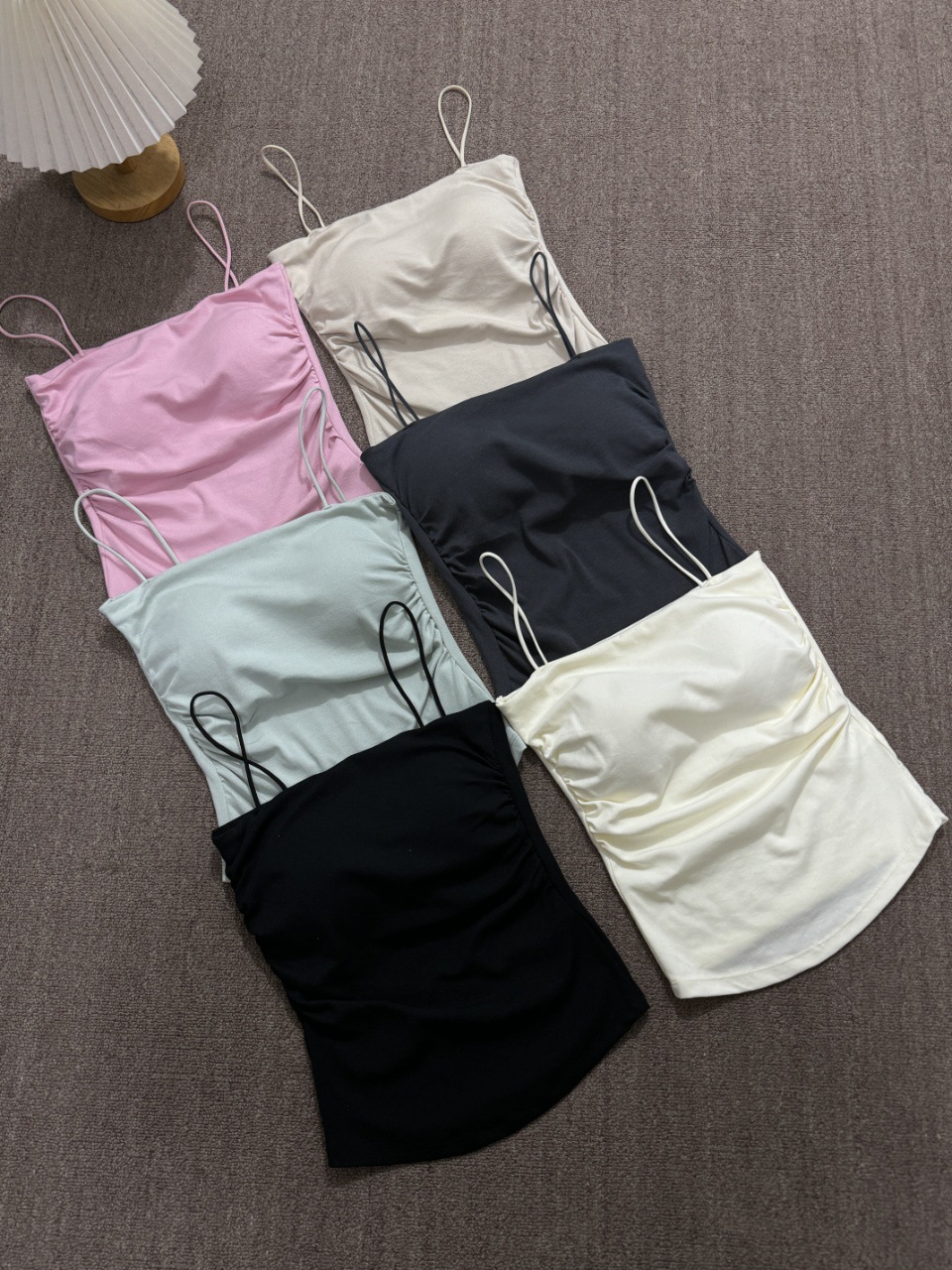 ソリッドカラーのホットガールビューティーバックキャミソール、胸パッド付き女性用スリムフィットボトムス、多用途のチューブトップ下着、プリーツ入り痩身チューブトップ