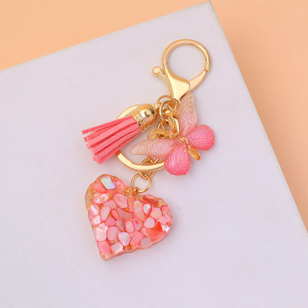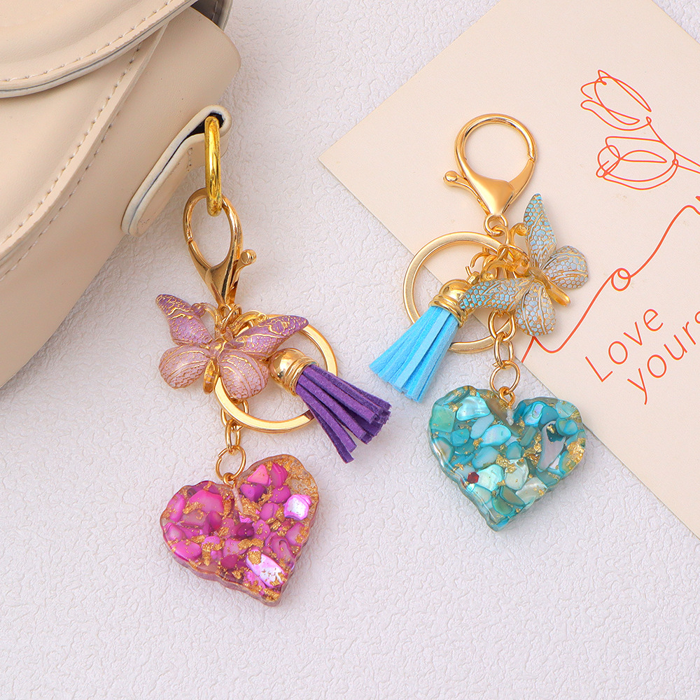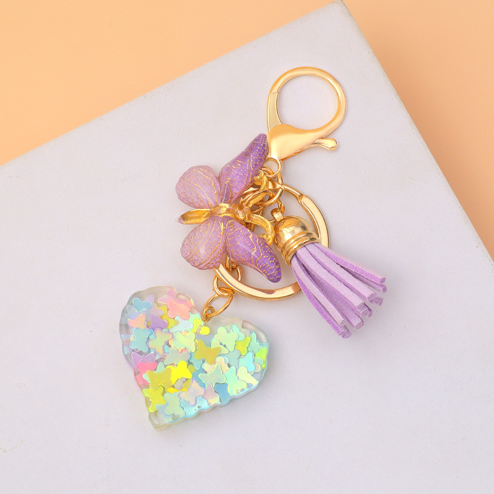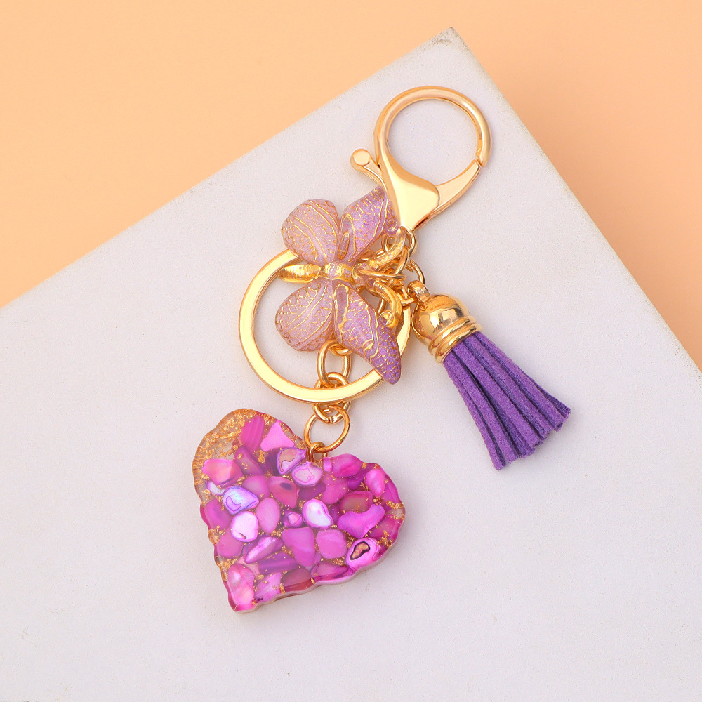 新しい愛のキーホルダーピンク紫色樹脂ストラップ女性ハンドバッグフリンジ蝶装飾ギフトアクセサリー