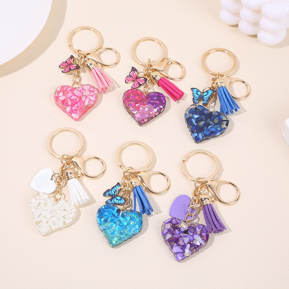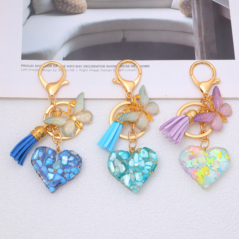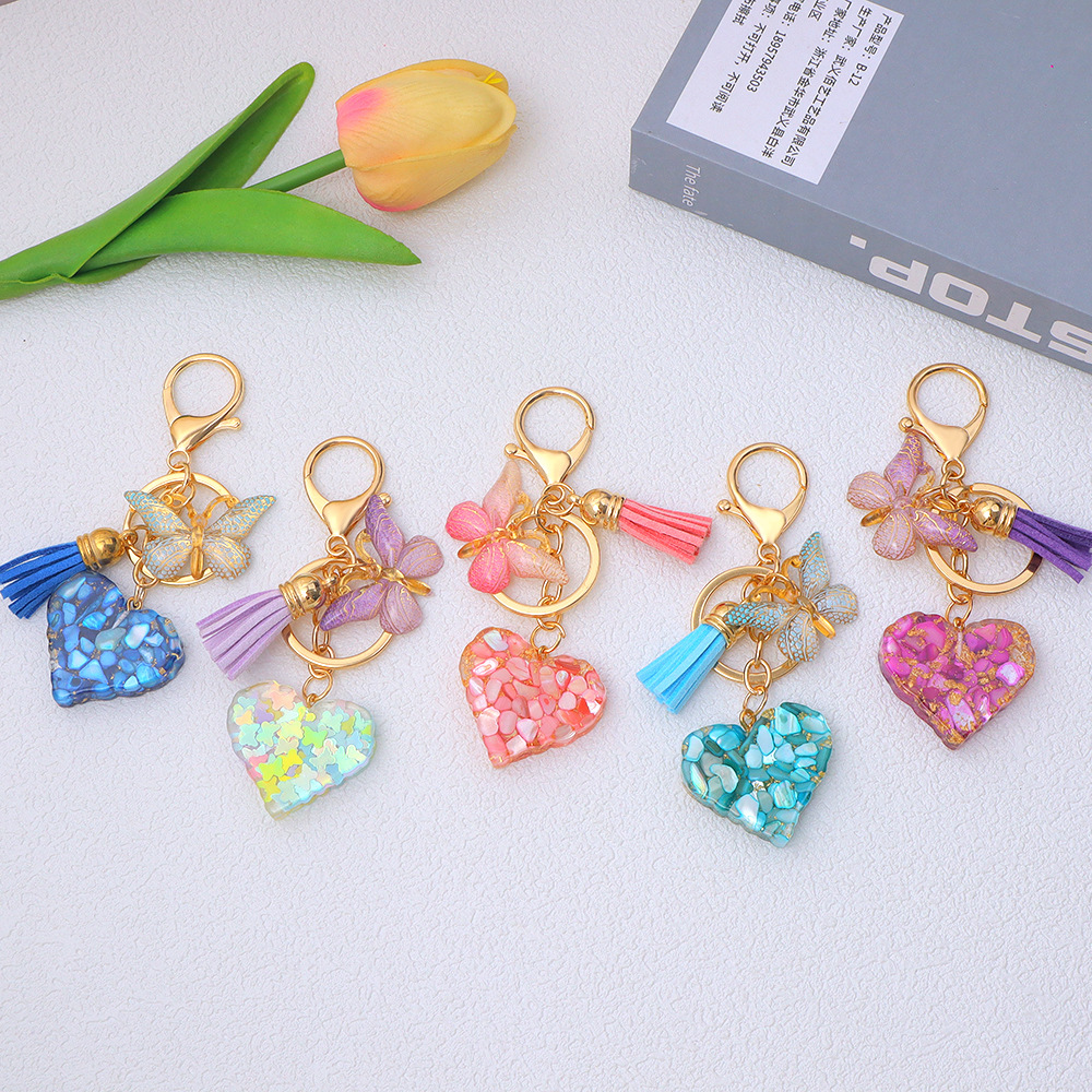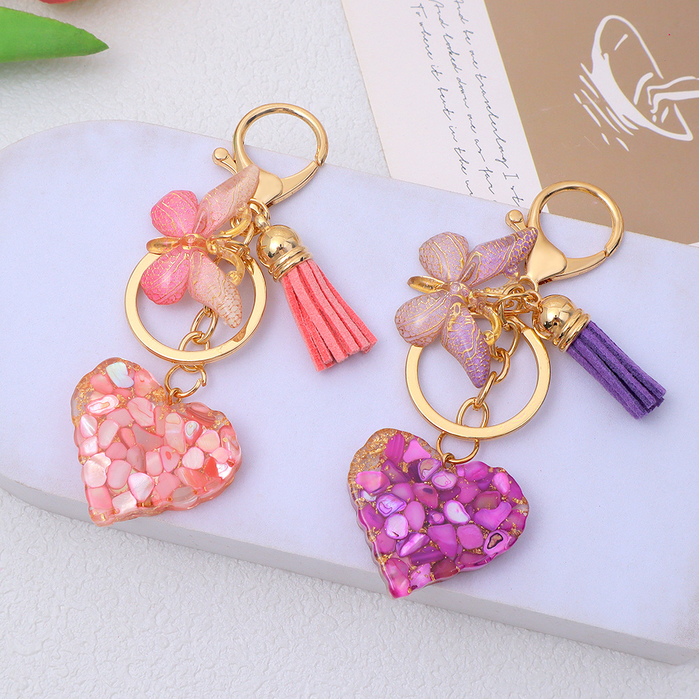 新しい愛のキーホルダーピンク紫色樹脂ストラップ女性ハンドバッグフリンジ蝶装飾ギフトアクセサリー