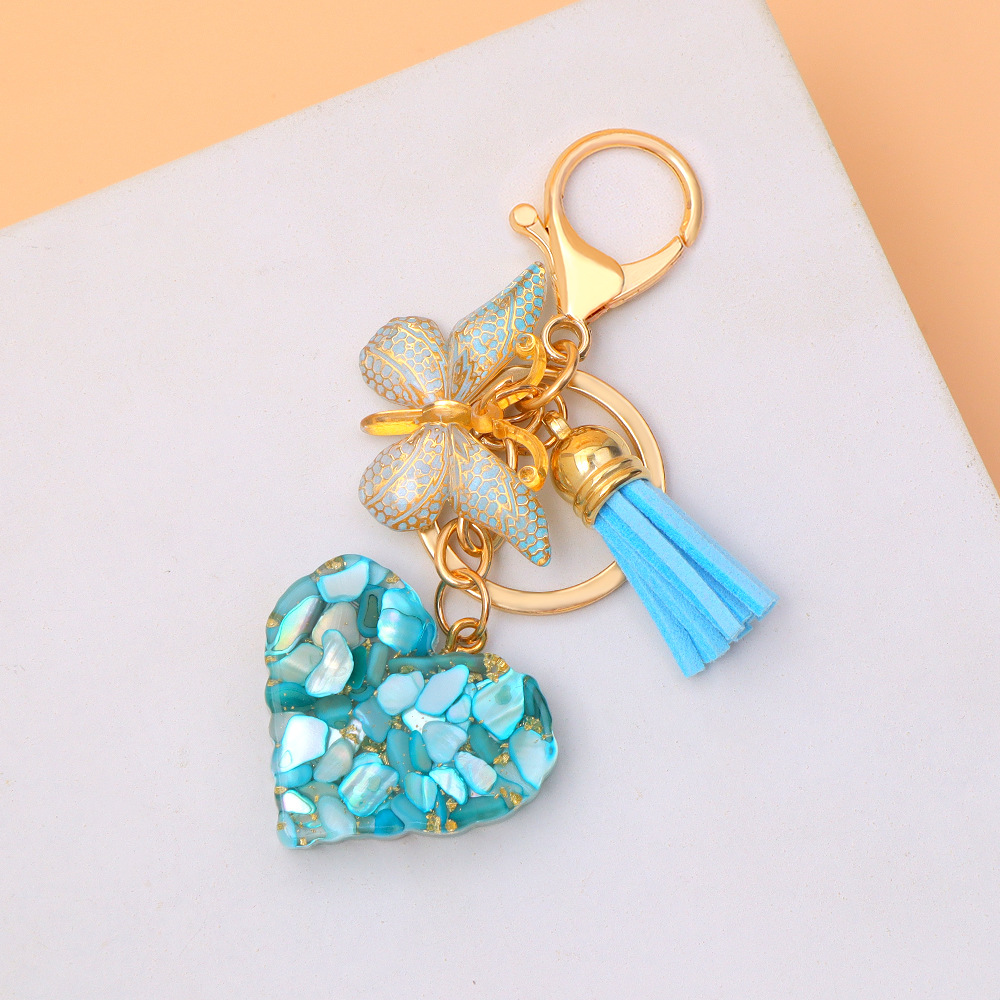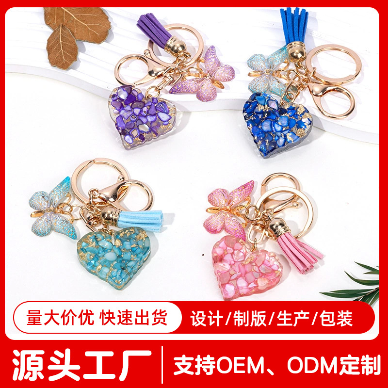 树脂镂空爱心钥匙扣流苏蝴蝶包包钥匙链挂件情人节礼物跨境热销