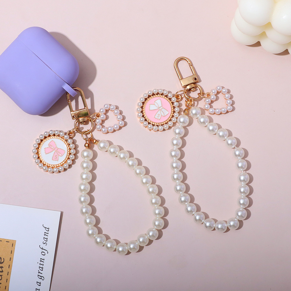 小香風リボン蝶結びペンダントキーホルダー紛失防止真珠携帯電話の鎖女子学生バッグ装飾部品