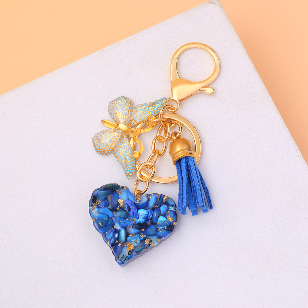 クロスボーダー樹脂金箔充填ラブペンダントキーホルダーファッションリボンタッセルバッグペンダントホリデーギフト