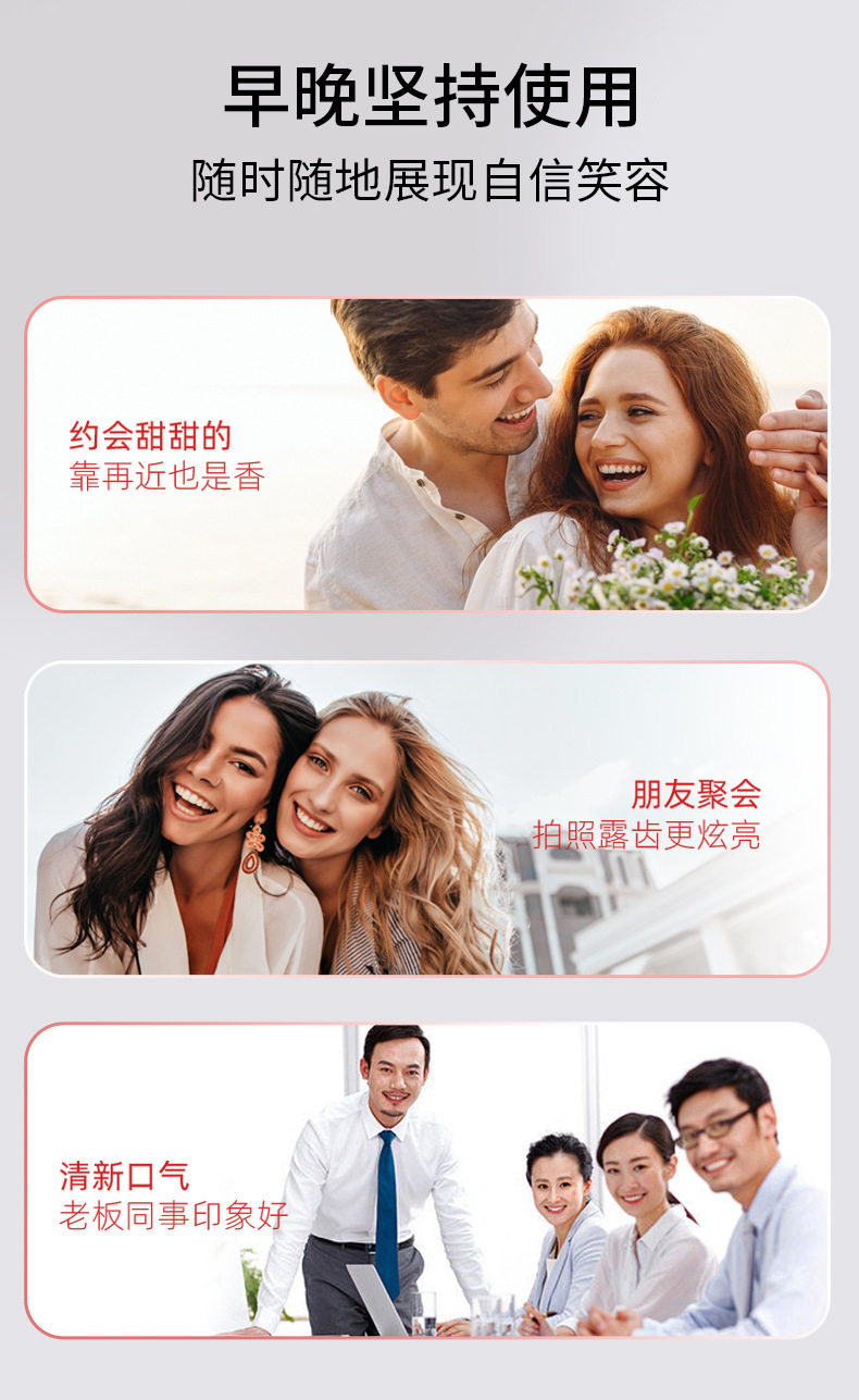 冷光ホワイトニング歯磨き粉、ホワイトニング、汚れ除去、黄ばみ除去、臭い除去、パープルライトバーストビーズ、抗菌ペプチドカラーホワイトニング歯磨き粉に特化