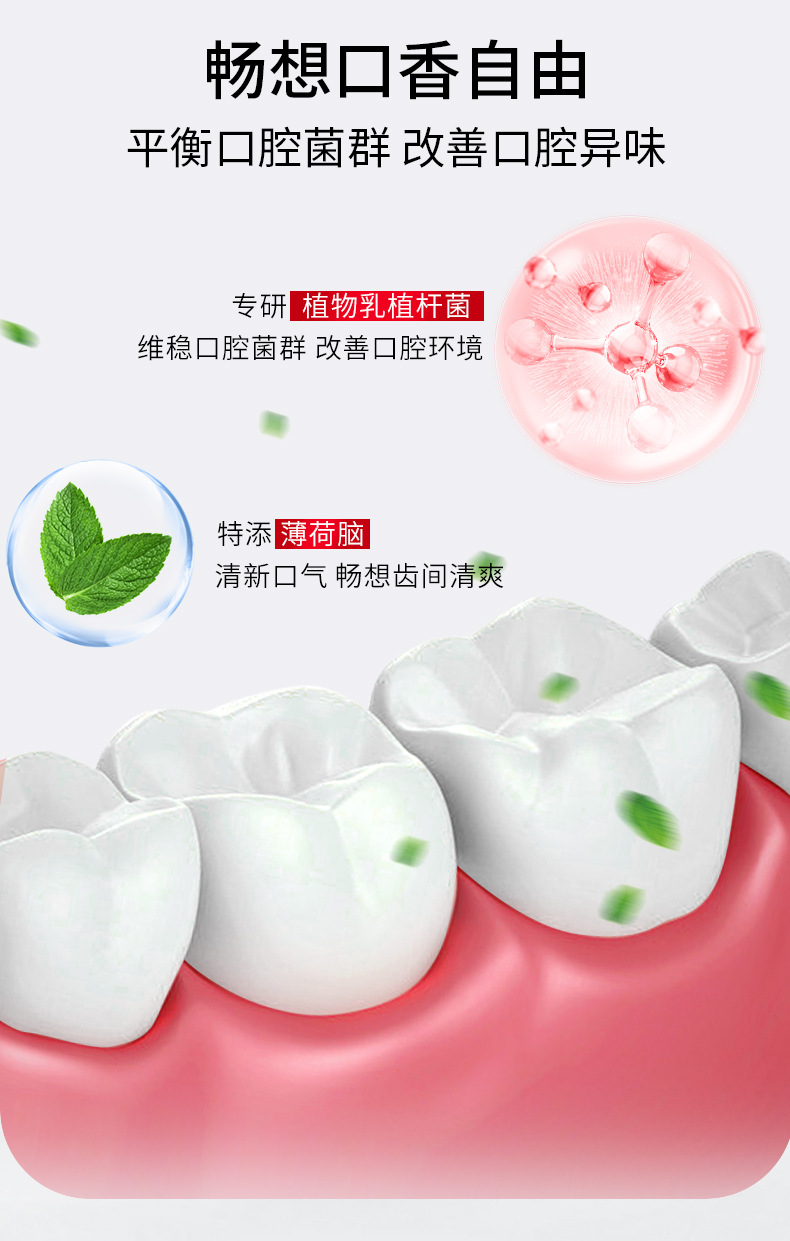 ソファプロバイオティックフレグランスマウスウォッシュタブレット、爽やかな息、歯の洗浄と保護、携帯用チュアブル歯の洗浄タブレット、固形歯磨き粉