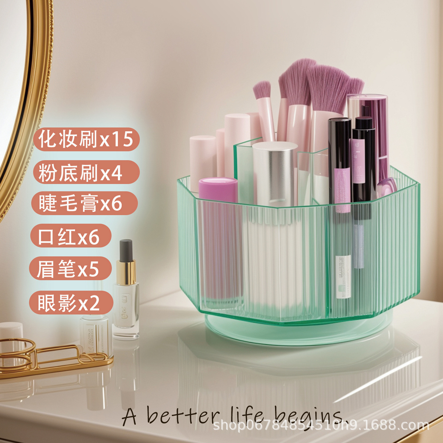 軽豪華回転デスクトップ化粧品収納ボックス化粧台スキンケアパレット透明口紅アクセサリー置物掛け棚