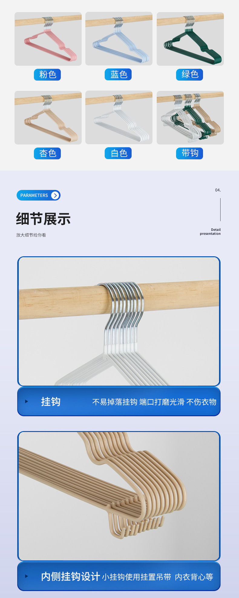 浸塑ズボンハンガーズボン収納家庭用無痕滑り止めjk掛けステンレススカート干しクリップ