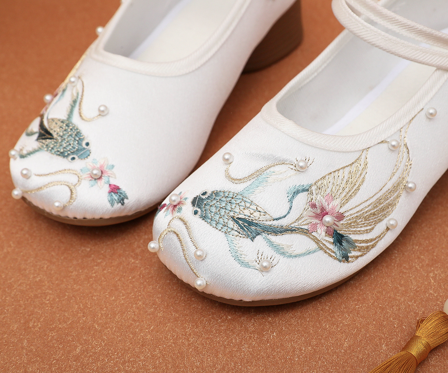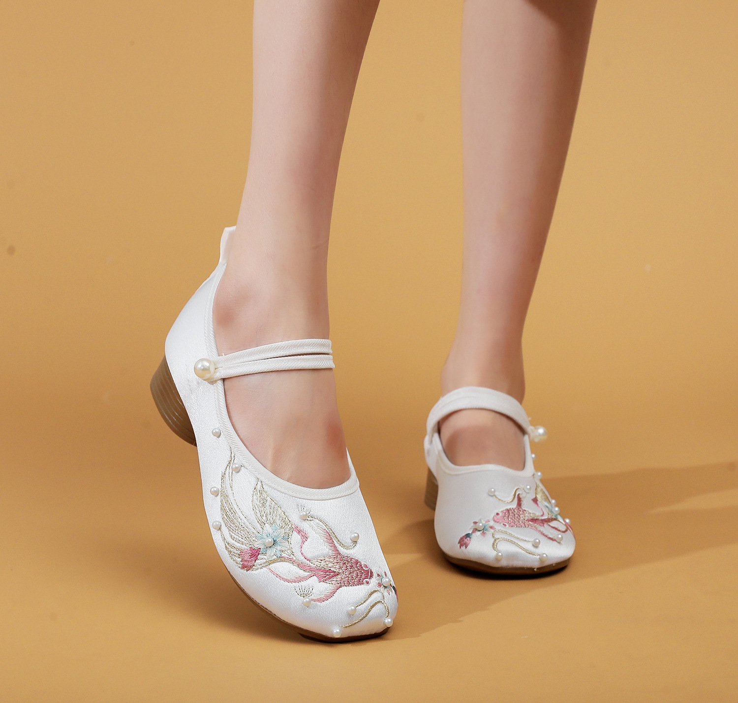 新しい女性の刺繍の靴の靴の花の布の靴の女性のチャイナドレスの靴の靴のバックルの白い赤い黒い靴の組み合わせ
