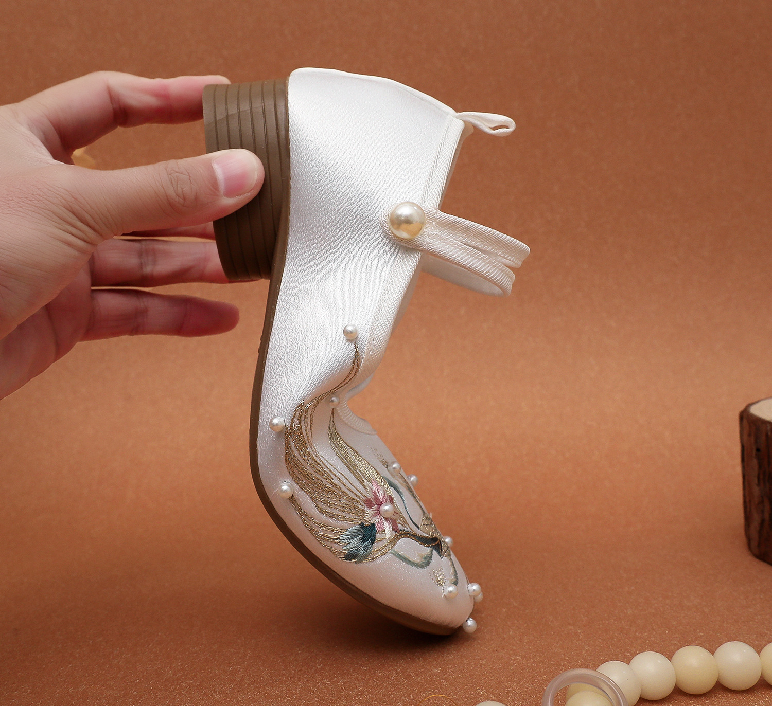 弓の靴の漢服の靴の古風な女性の刺繍の布の靴の中で高くなって首を長くします。