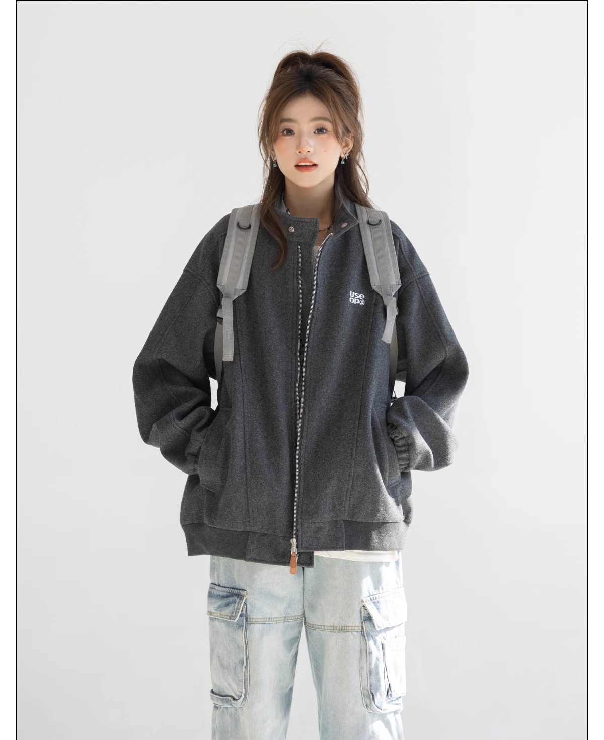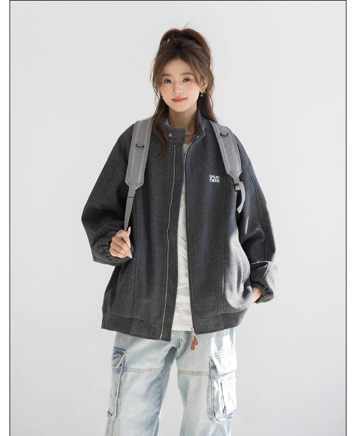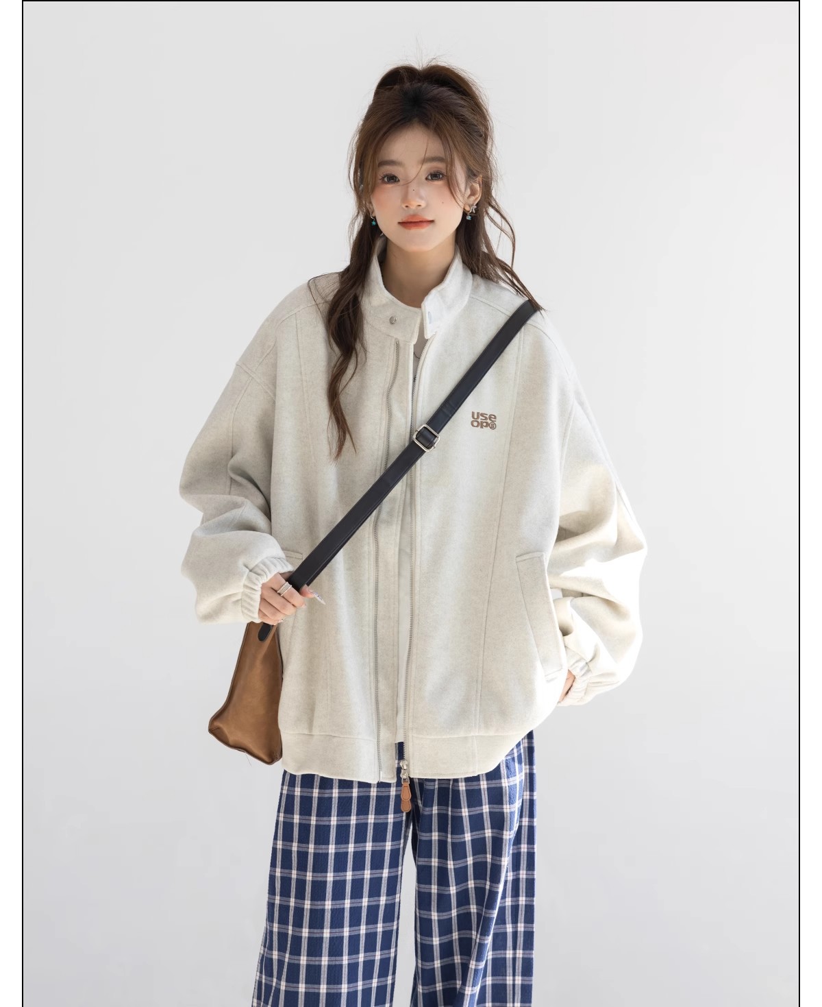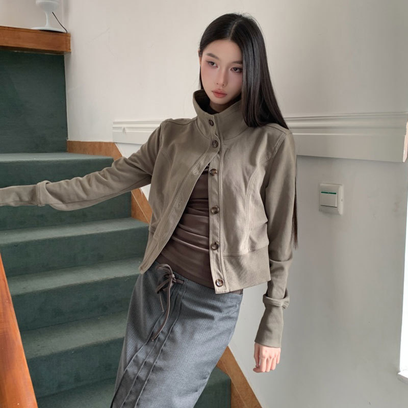 短外套女设计感小众磨毛立领短款收腰显瘦复古休闲百搭夹克上衣秋