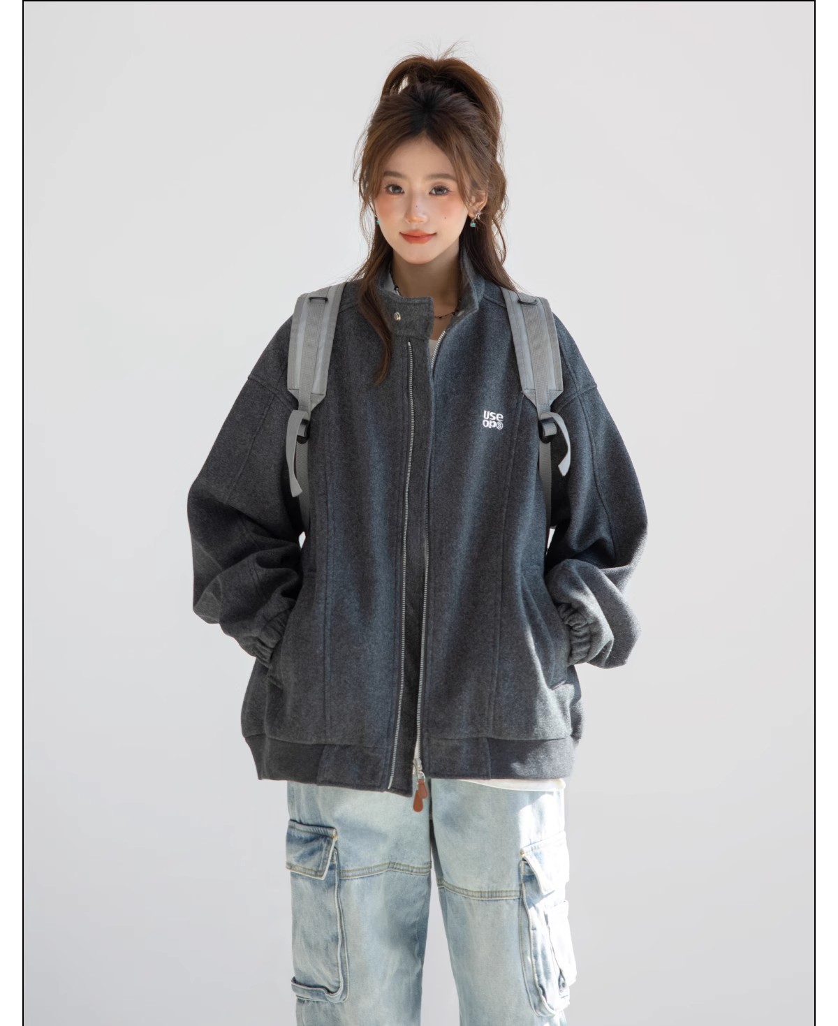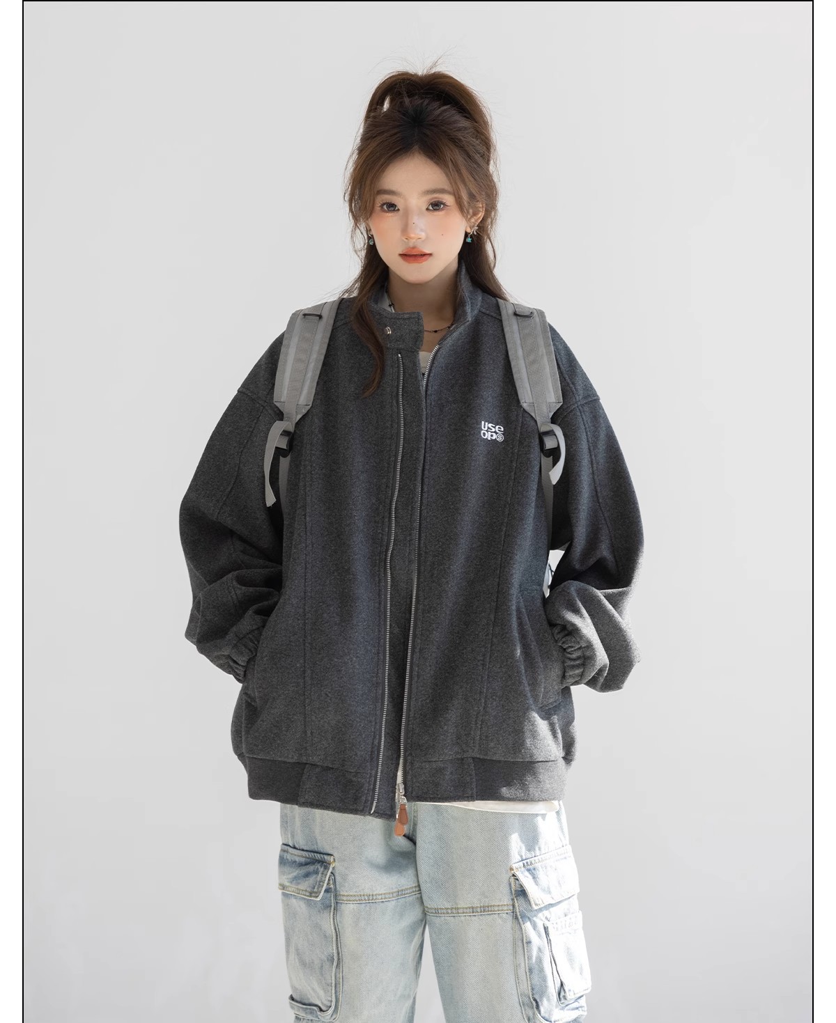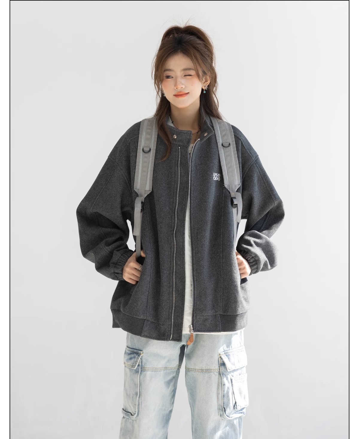 短外套女设计感小众磨毛立领短款收腰显瘦复古休闲百搭夹克上衣秋