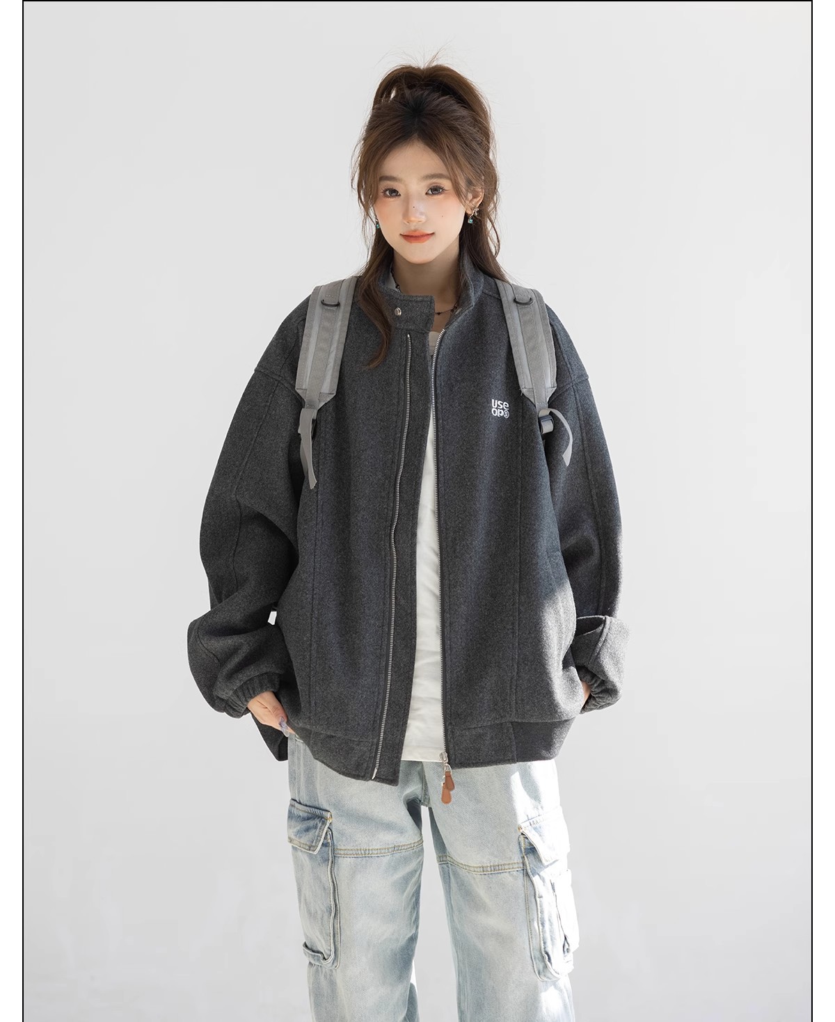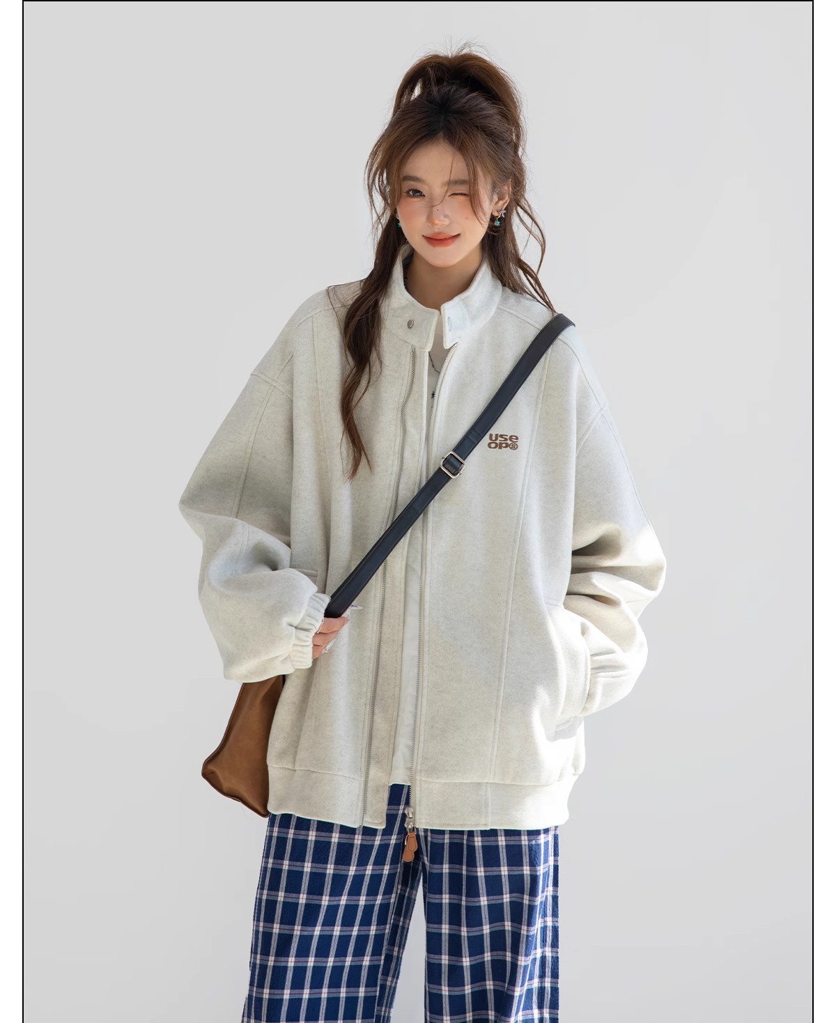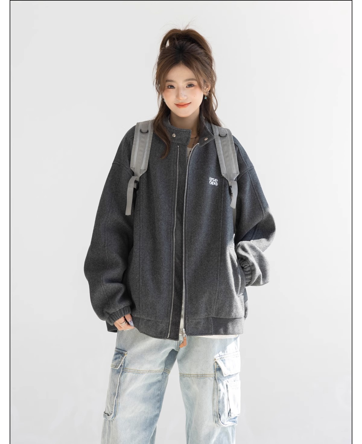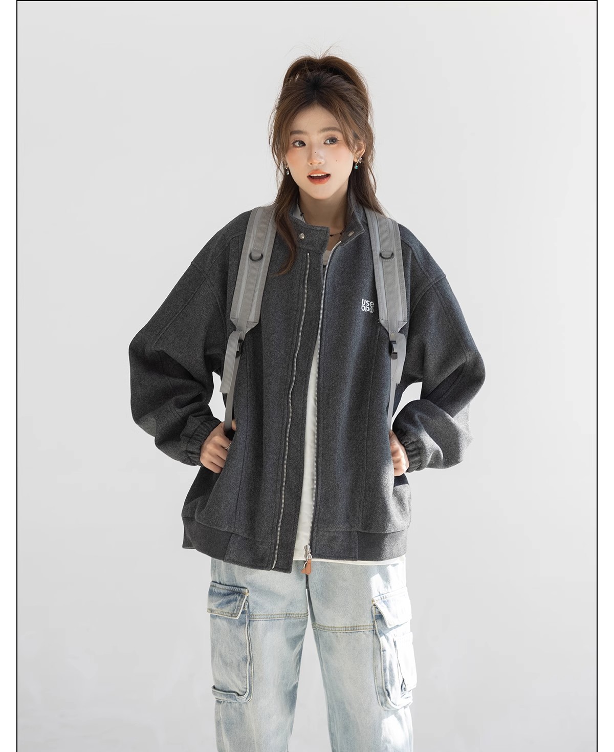 短外套女设计感小众磨毛立领短款收腰显瘦复古休闲百搭夹克上衣秋