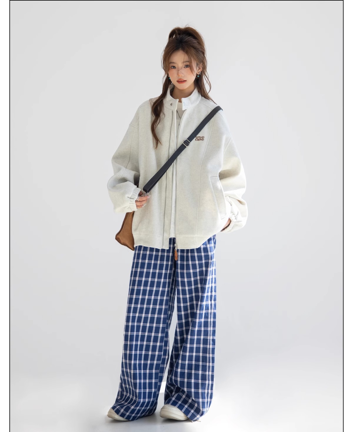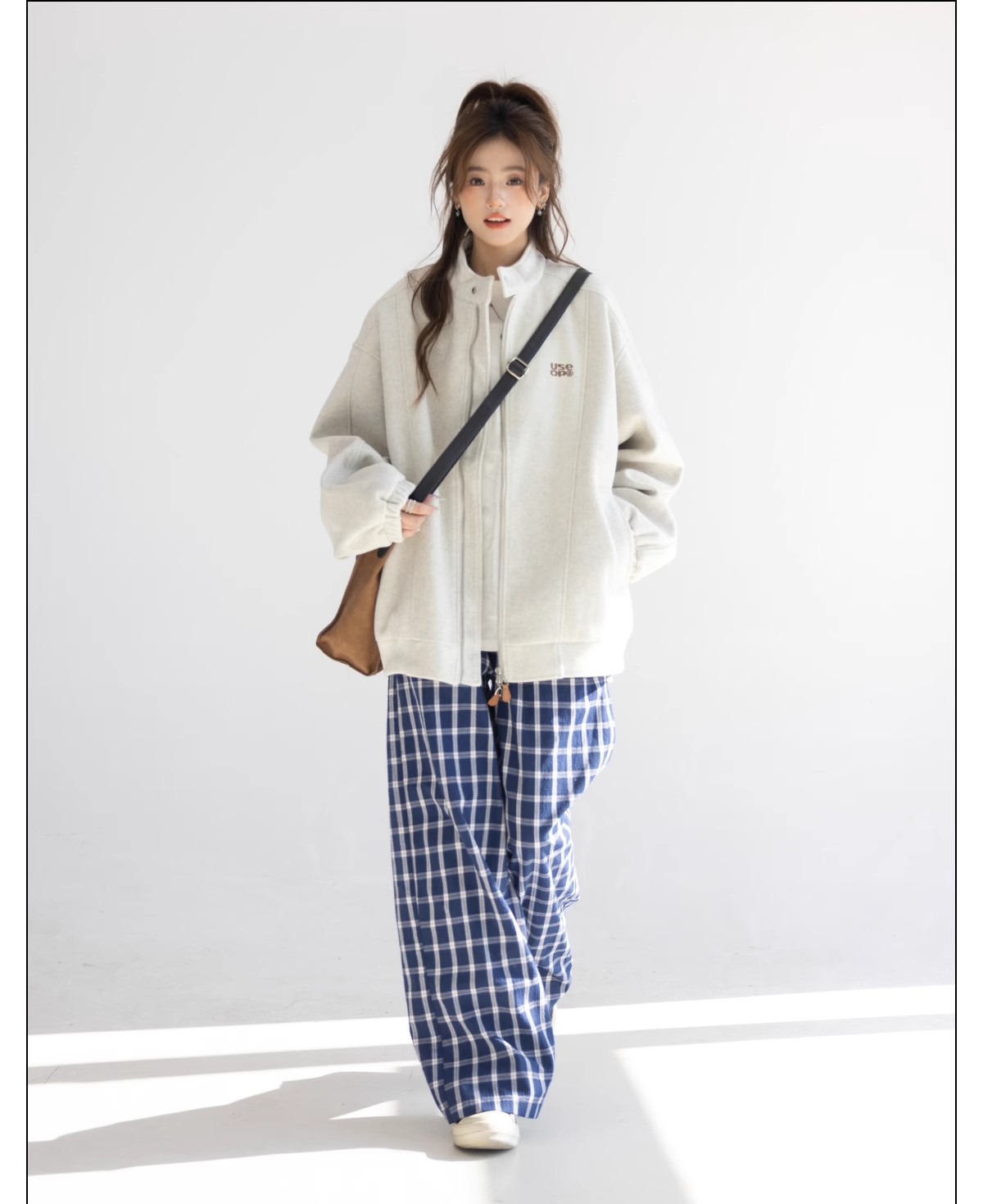 格子拼接POLO领假两件套卫衣女秋春2025新款宽松休闲百搭薄款上衣