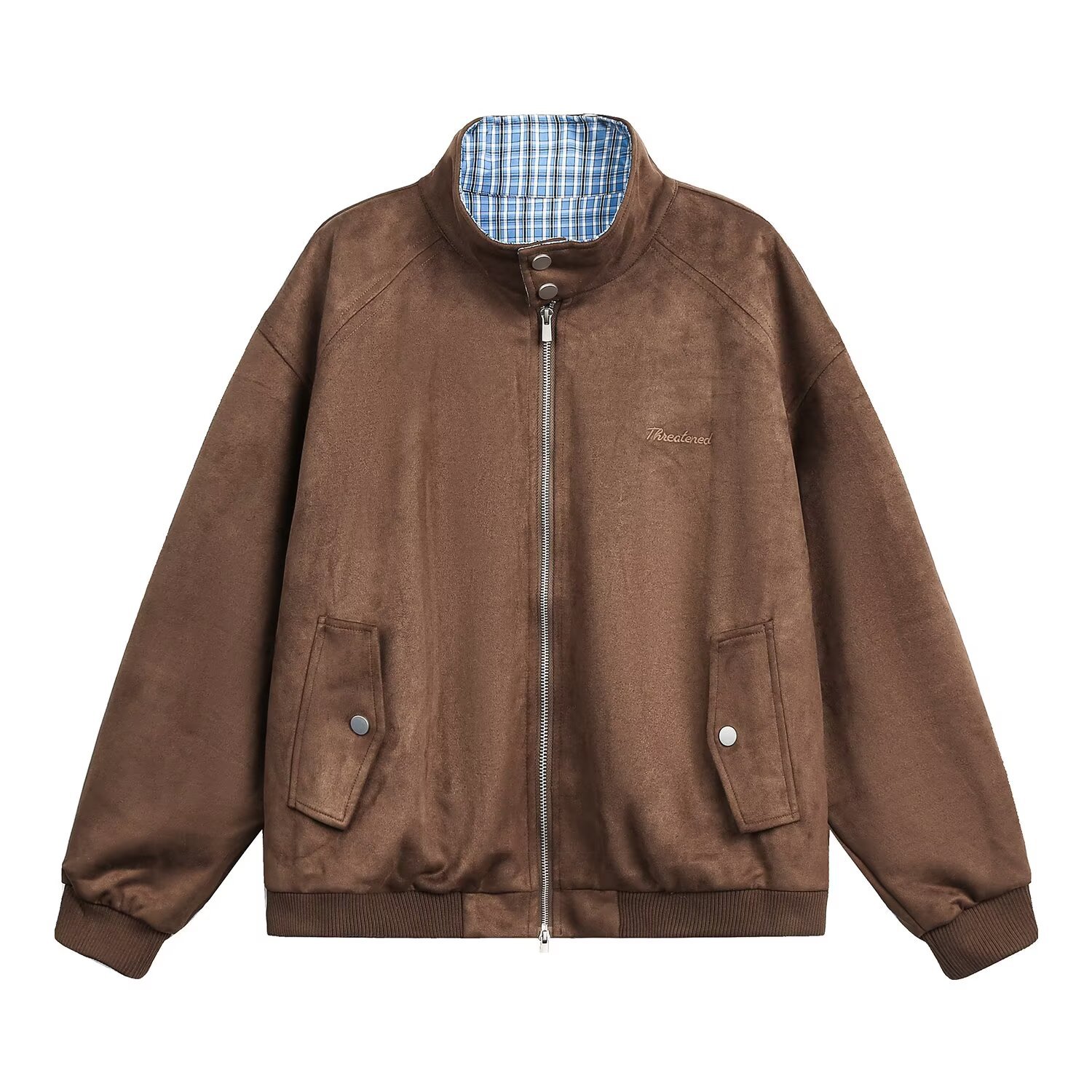 简约百搭流行慵懒文艺民族风夹克全刺绣原版麂皮绒潮流气质新款棉