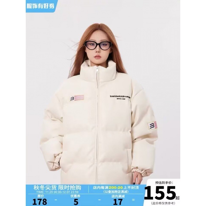 国潮アメリカ旗pu皮綿服女性秋冬厚手カップル上着パン服コート