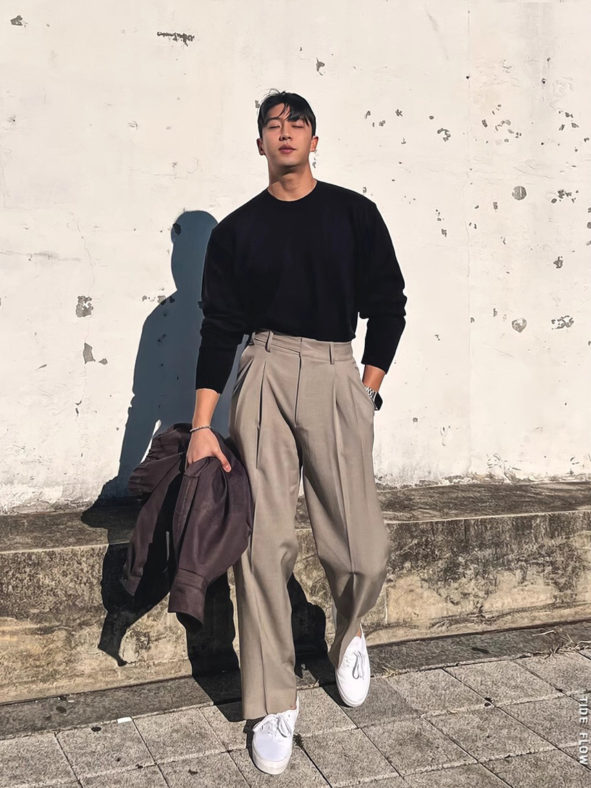 高級感リベットcleanfit黒の曲がり角のズボンの男性の春のタイプの郭の形のだらだらしている足のカジュアルなズボン