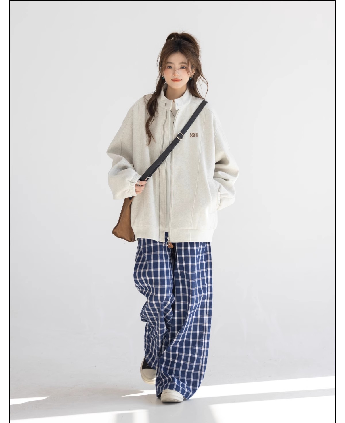 复古春旅复古巴恩风两穿格纹拼接落肩宽松休闲夹克棕色黄色粉色棉