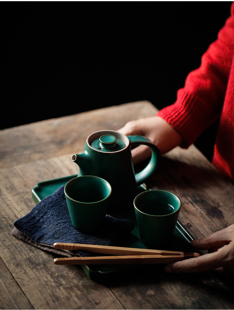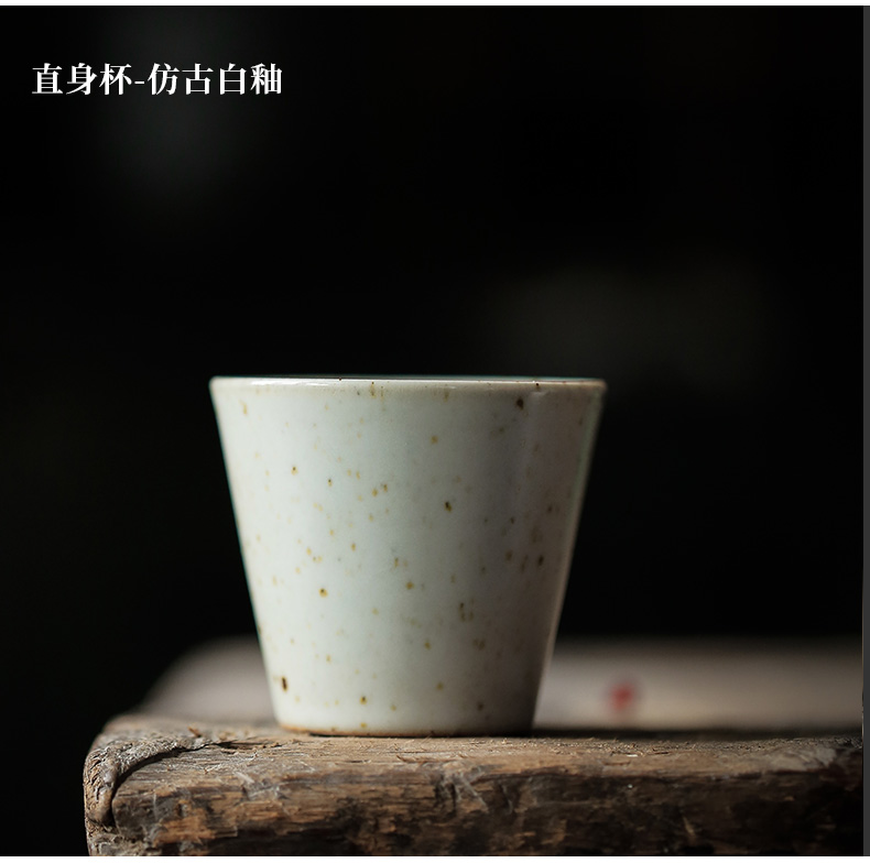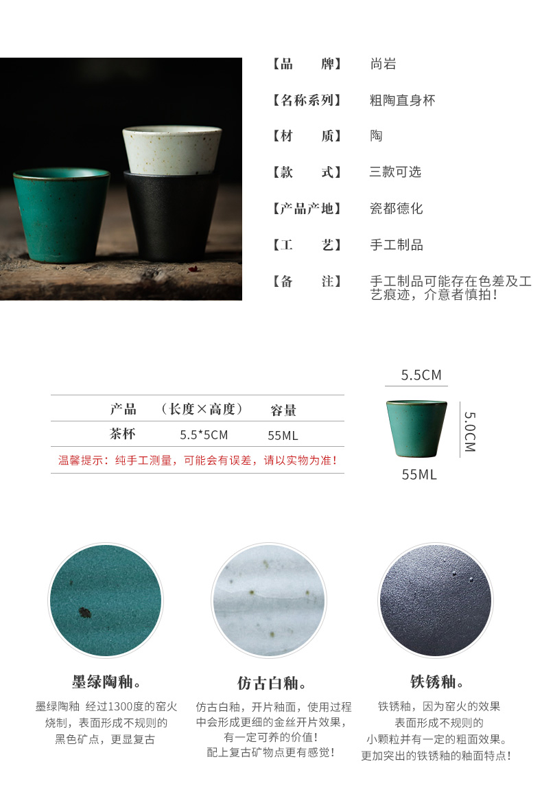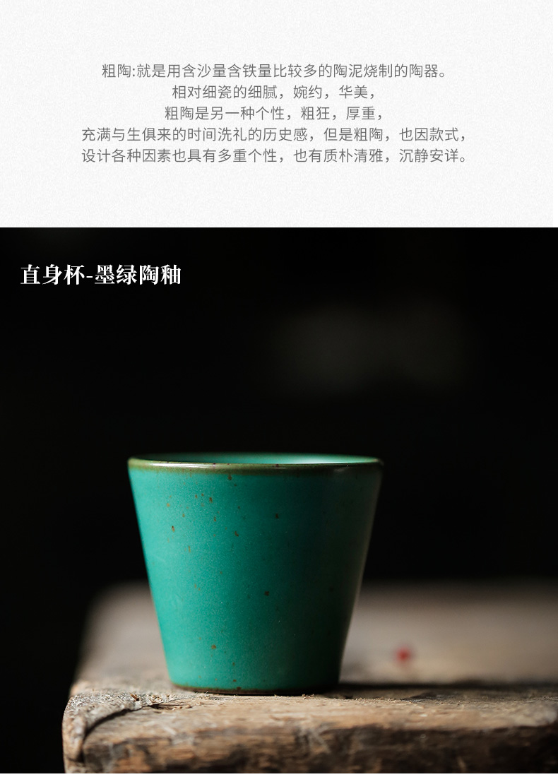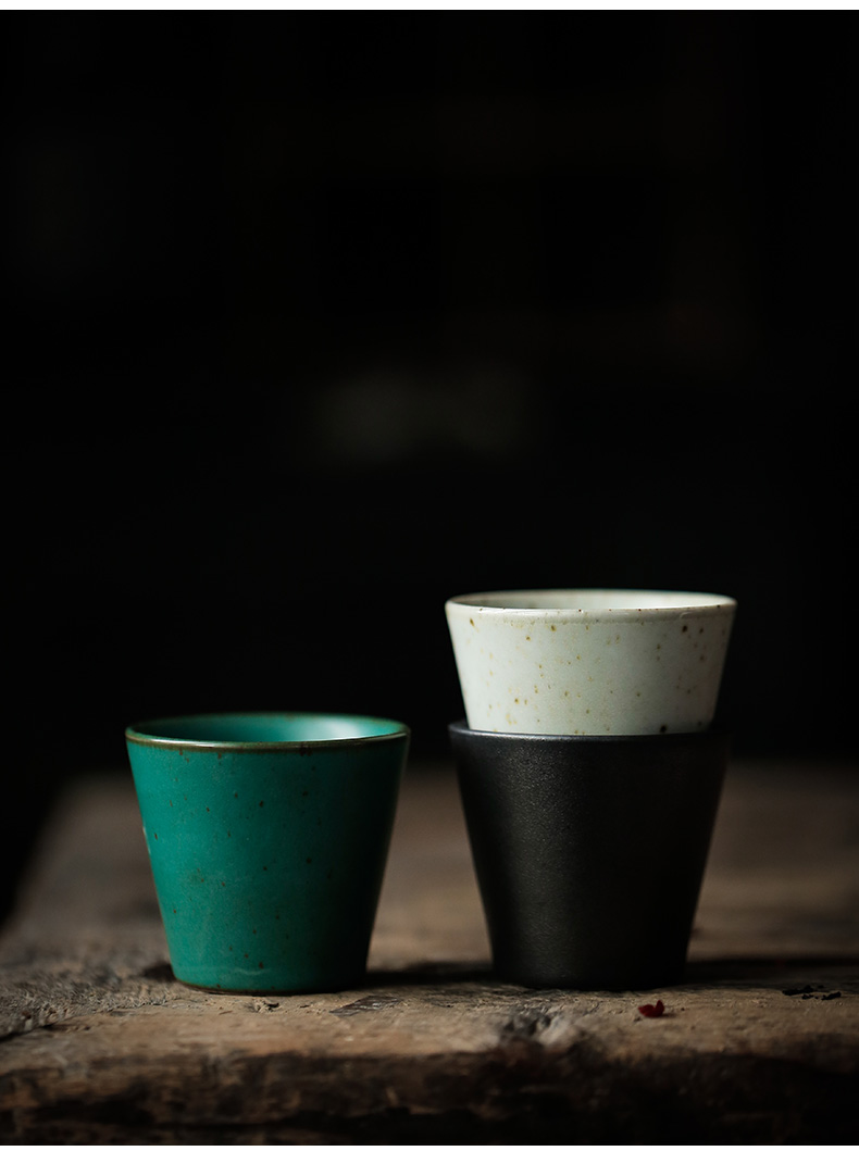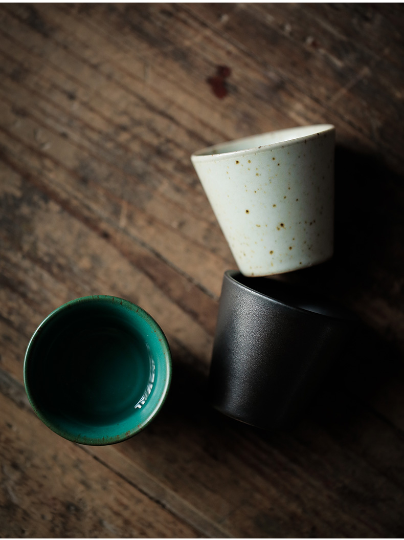 色の分類 ダークグリーンの陶器釉ストレートティーカップ,アンティークホワイトグレーズストレートティーカップ,光と影のさび釉ストレートティーカップ