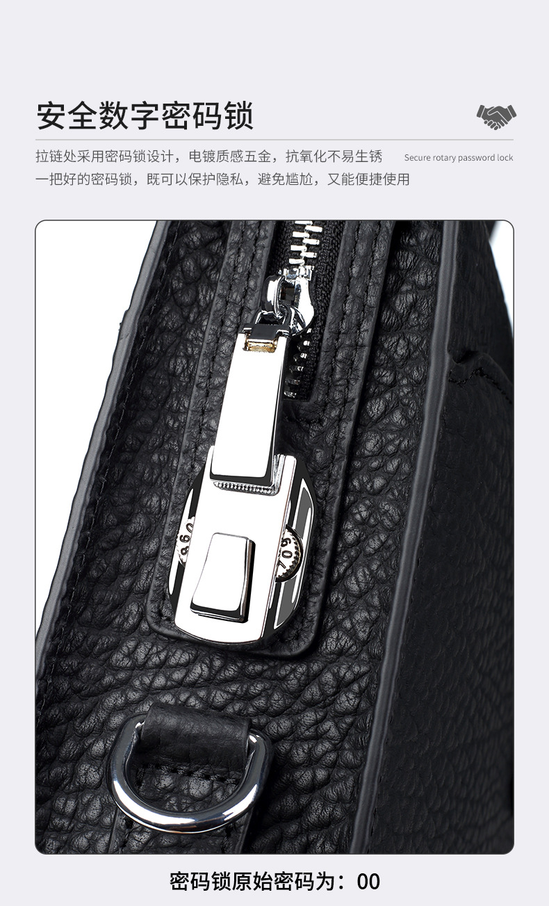 高級メンズハンドバッグ、ビジネスカジュアルバッグ、トレンド、高級パスワードロック、本革ファッションメンズブリーフケース