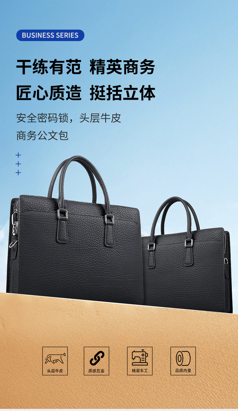 真皮男包多功能男式手提包密码锁防盗电脑包大容量商务男士公文包
