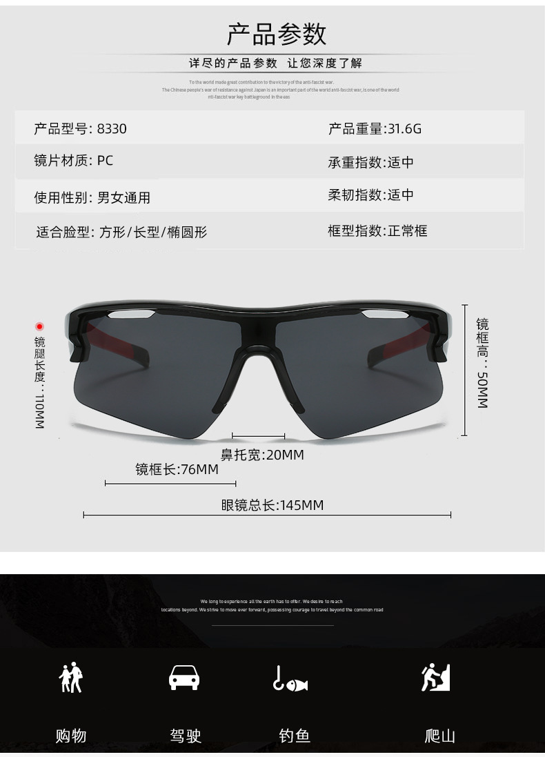 新しいヨーロッパとアメリカのクロスボーダースポーツサングラス、ラージフレームサイクリンググラス、日焼け止めと防風、自転車、登山、スキーサングラス