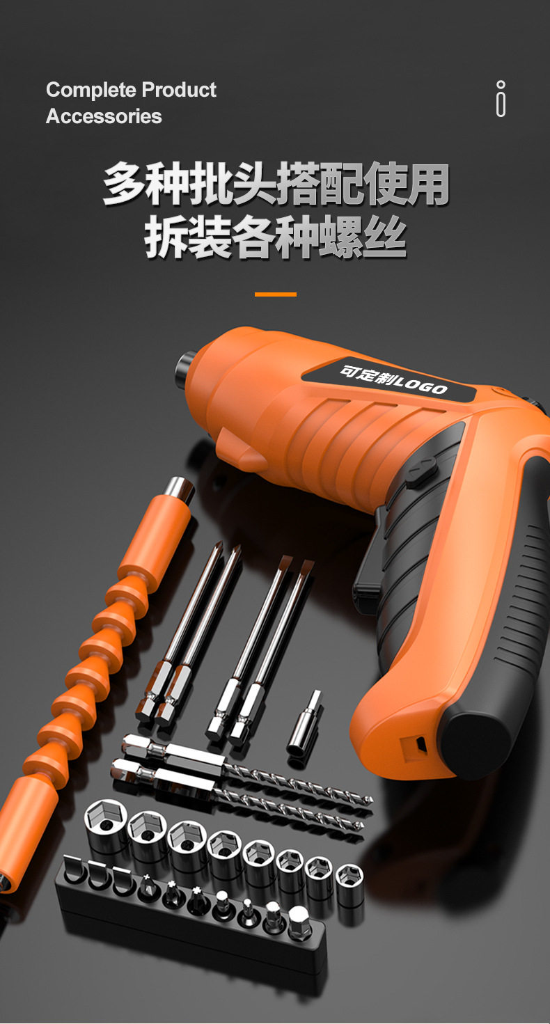 47件电动螺丝刀多功能家用折叠锂电批头充电式迷你起子机套盒批发