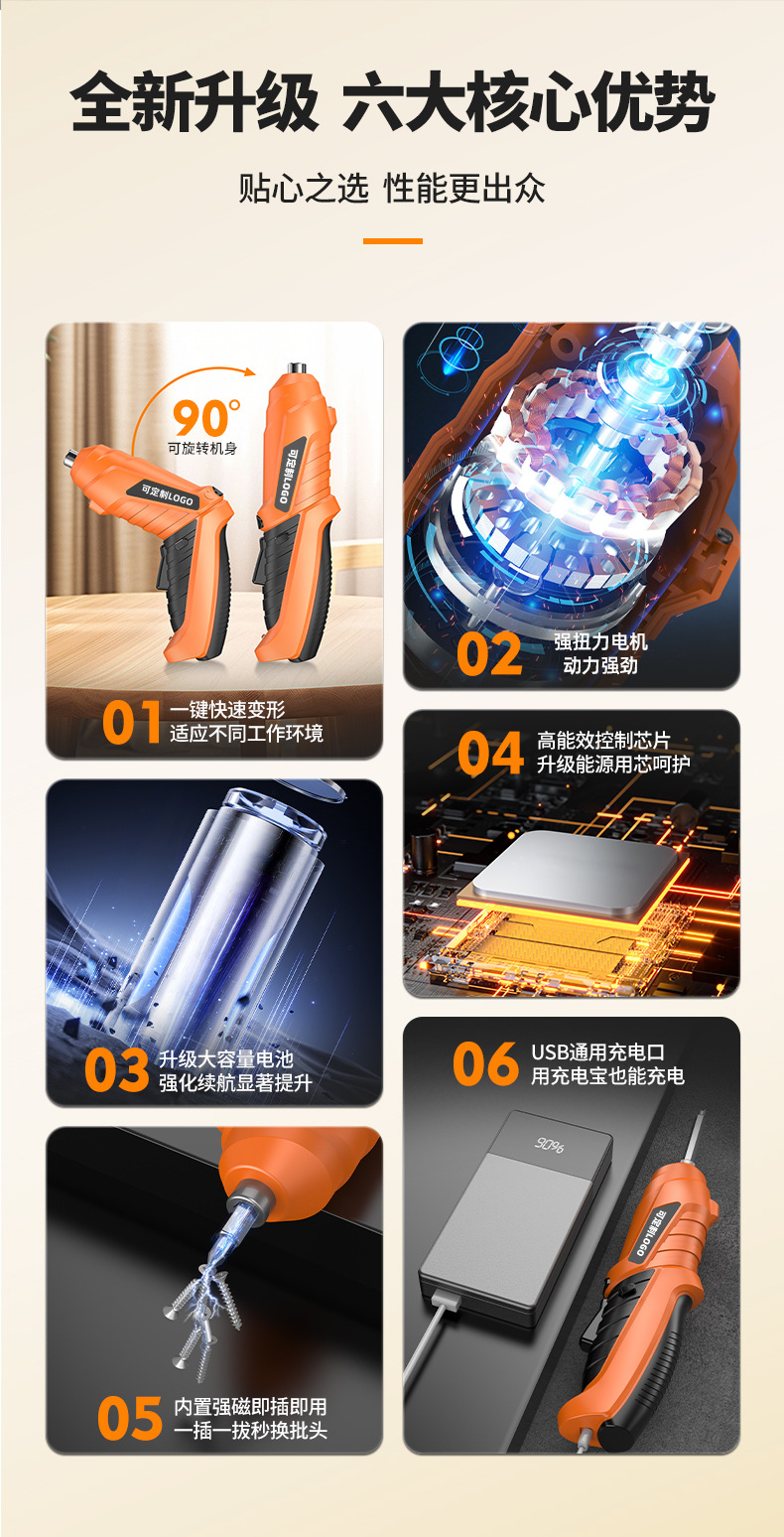 クールラベルメーカー卸売 USB 充電式ドライバー QD-CS003 回転ハンドル電動ドライバー高トルク