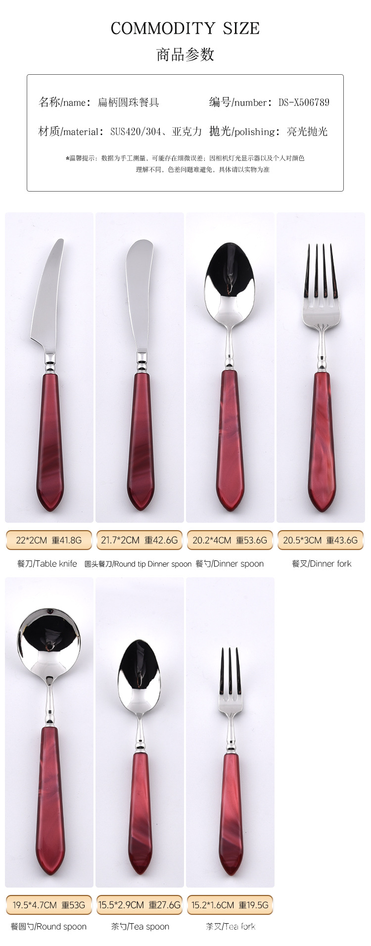 クリエイティブステンレス丸珠食器平柄ステーキナイフとフォークセット304アクリルスプーンとホテルの西洋食器