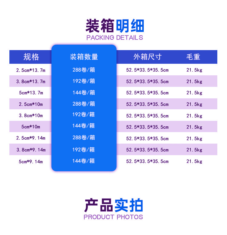 仕様 2.5cm×10m,3.8cm×10m,5.0cm×10m
