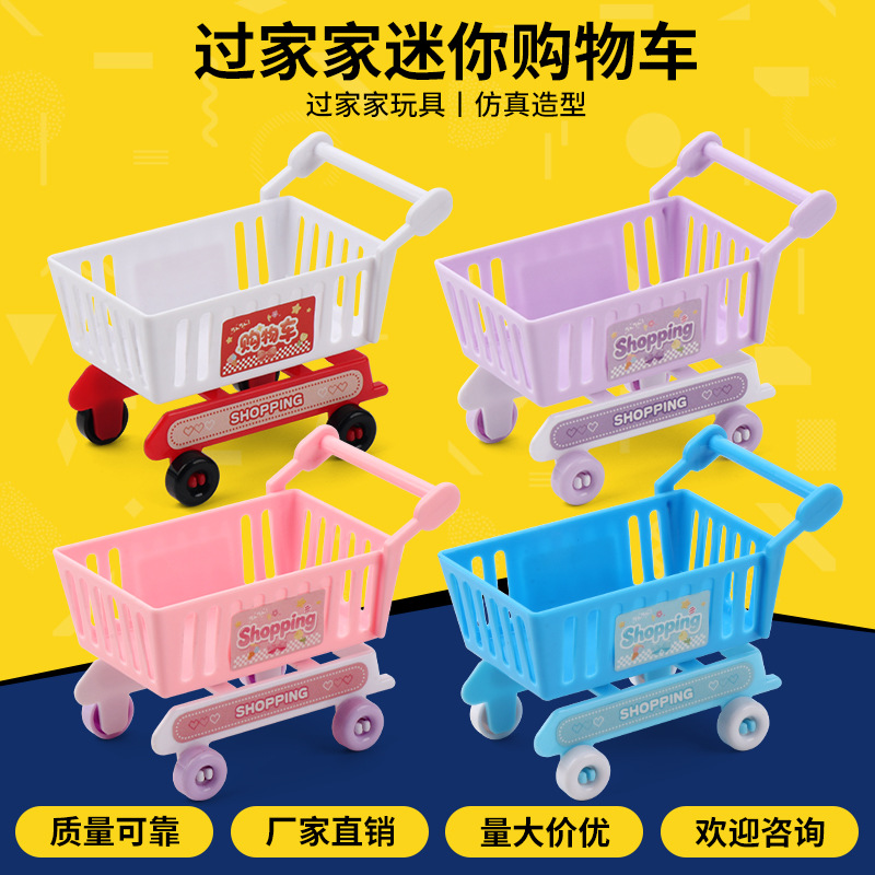 跨境迷你小推车微缩玩具 可爱仿真模型摆件超市零食商品购物车