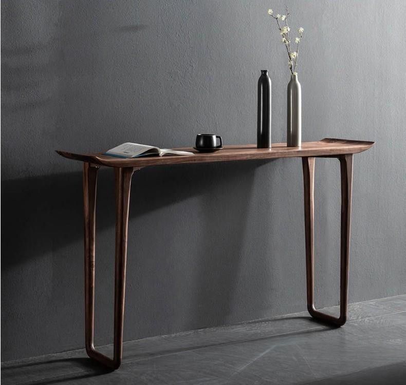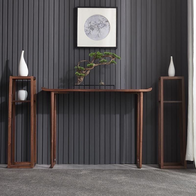 中国式の木の玄関の禅意はテーブルに壁の狭いテーブルに寄りかかって家に入る条案の頭を上げます。