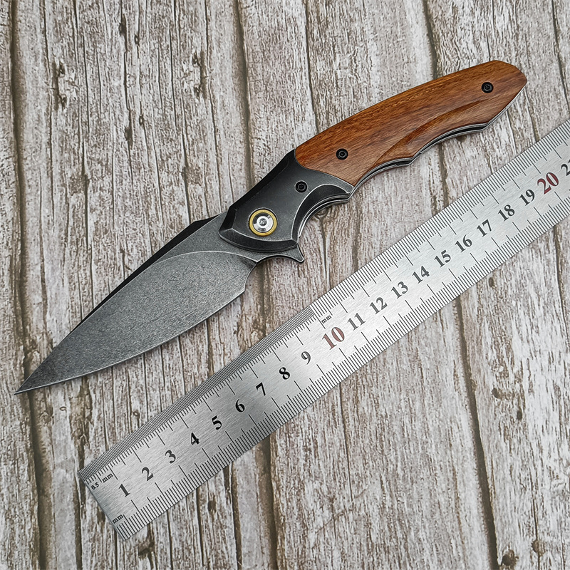 新品ウズスチール高硬度シャープアウトドア折りたたみナイフ木柄手持ちポケット折り刃野外防身ナイフ