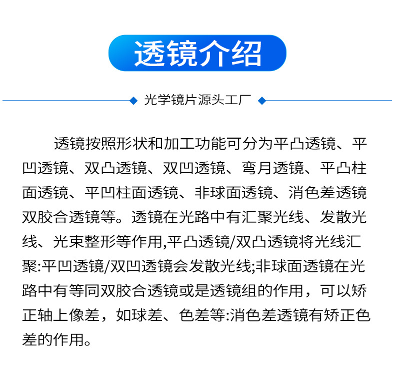 工場直送の青板レンズ、光学機器、高精度光学部品、レーザー機器、耐放射線性、透光性