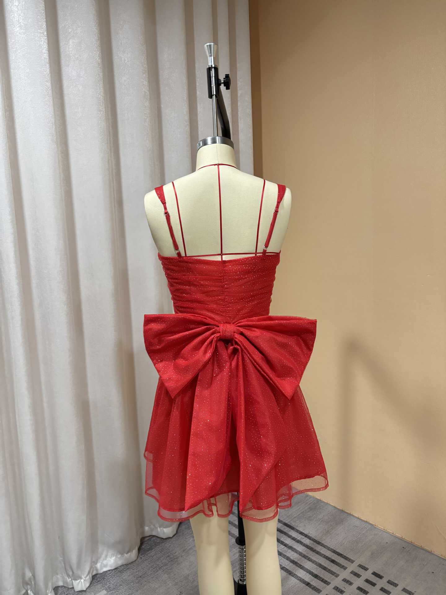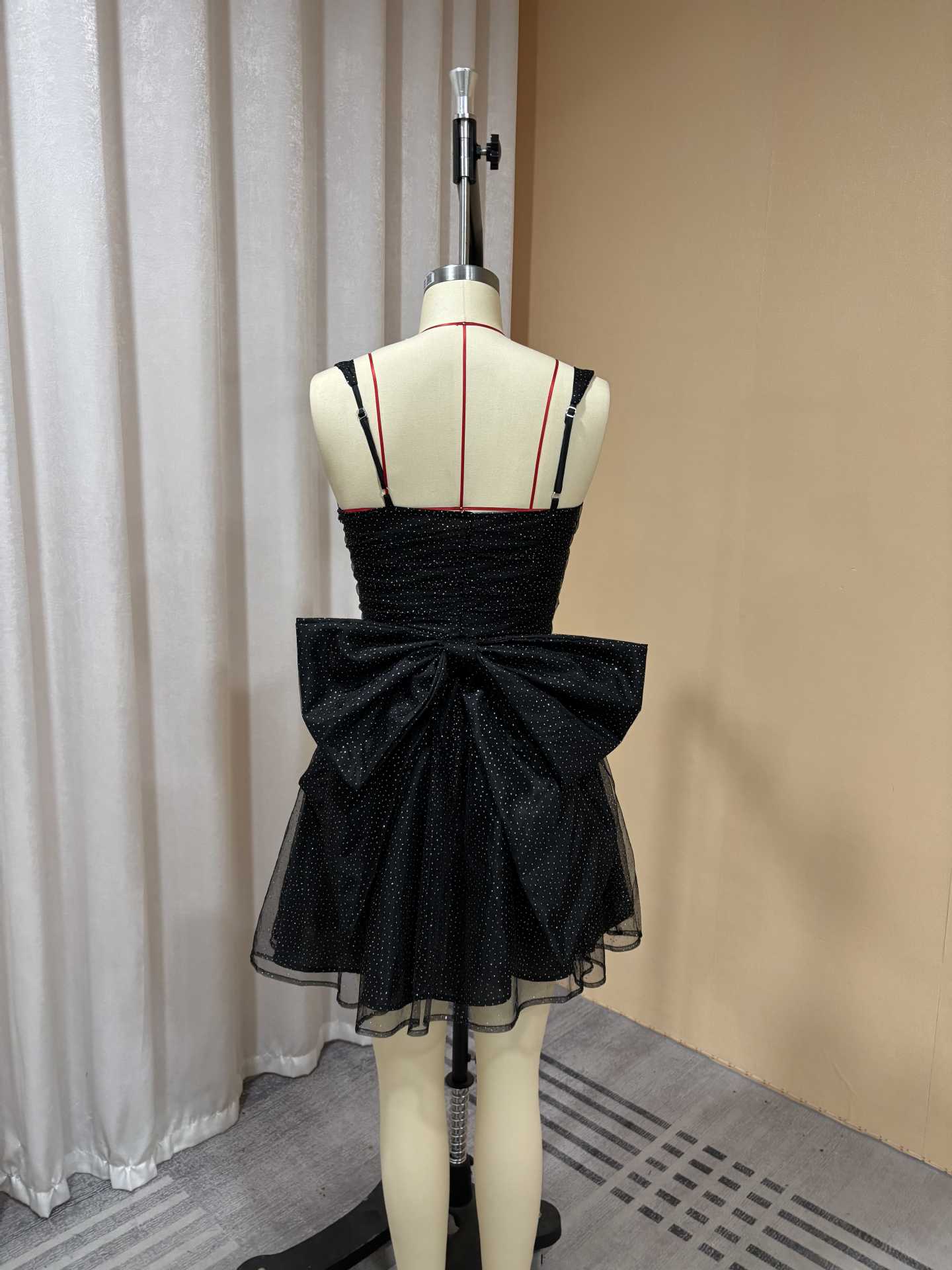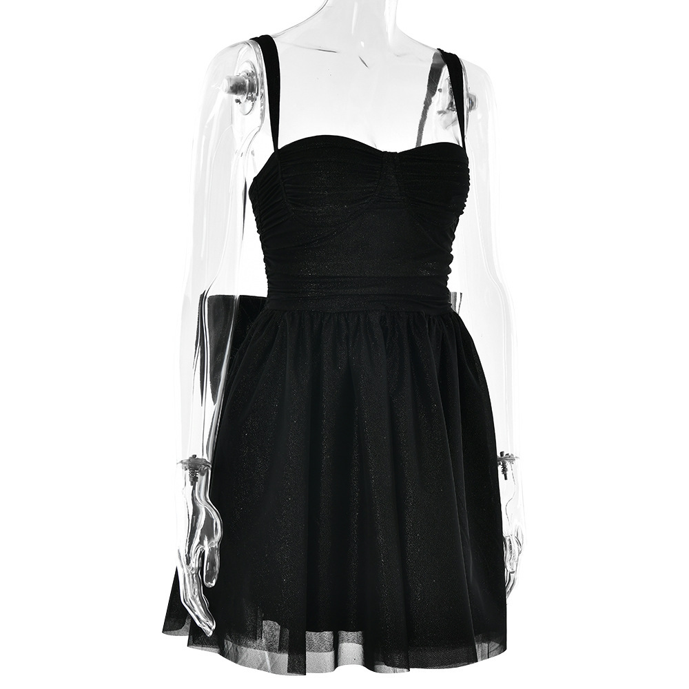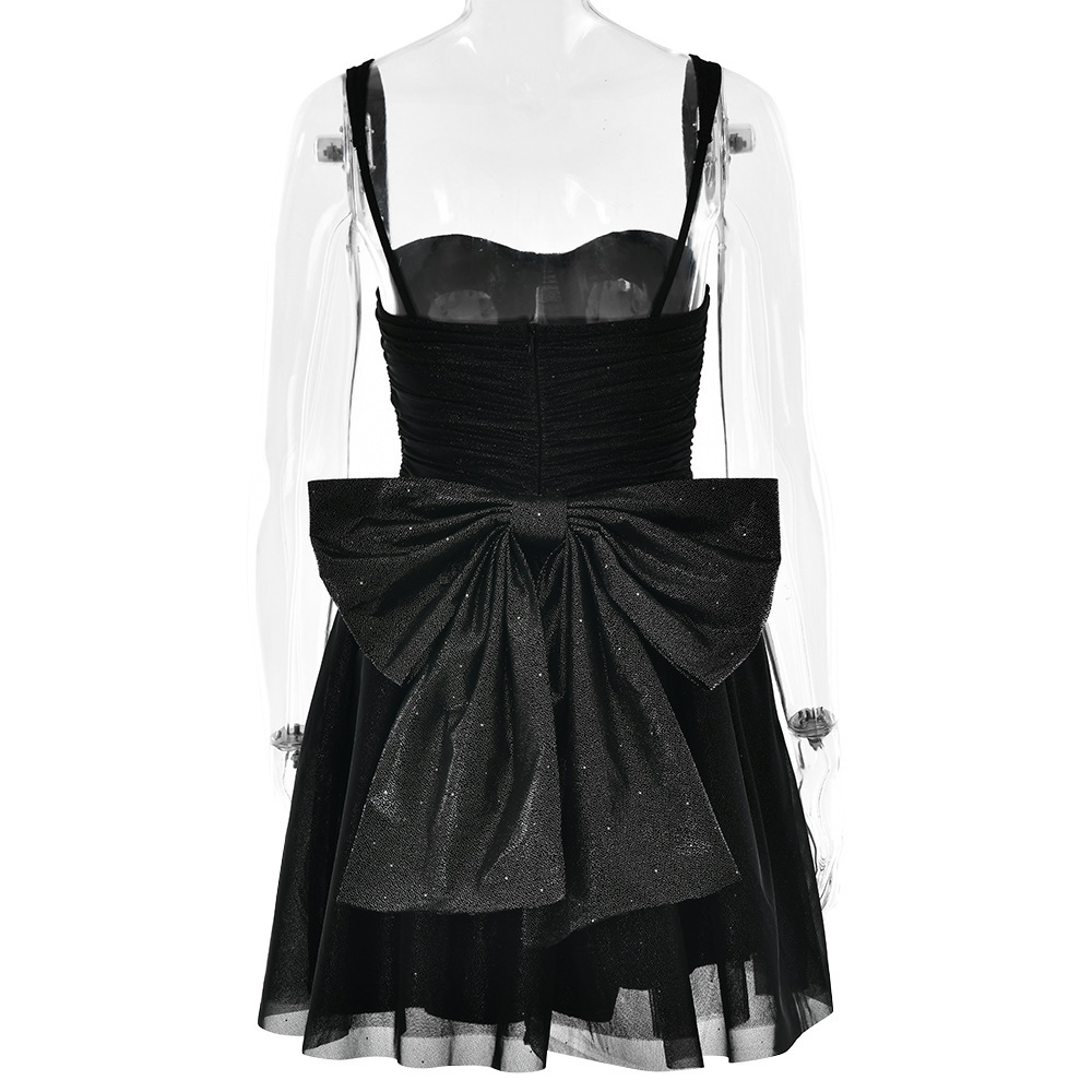 外贸欧美吊带亮片短款小礼服蝴蝶结设计生日宴甜美优雅轻奢连衣裙