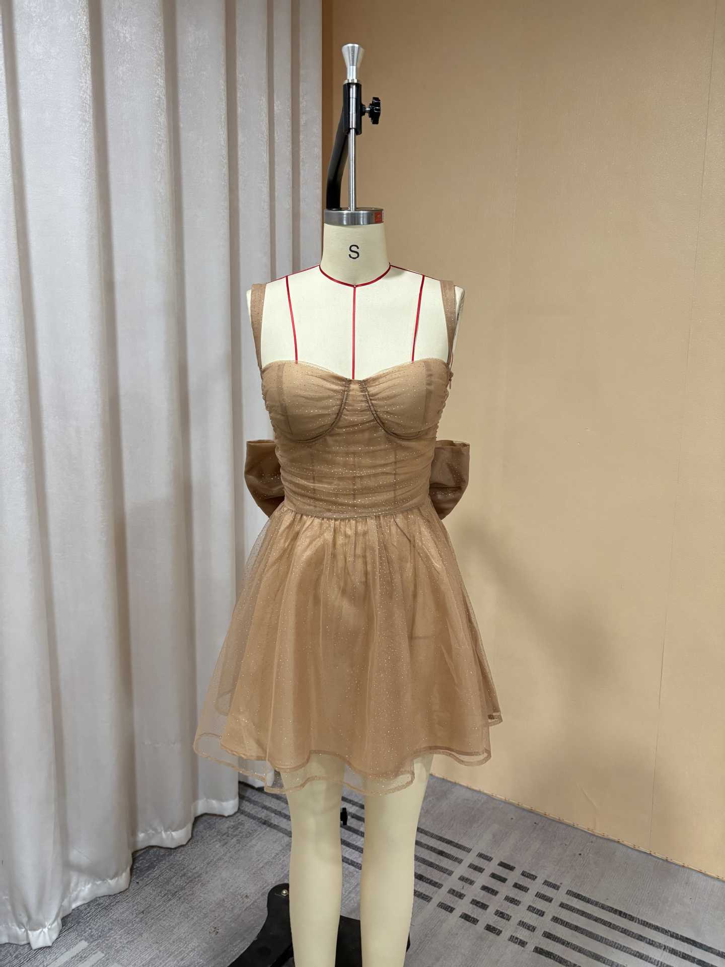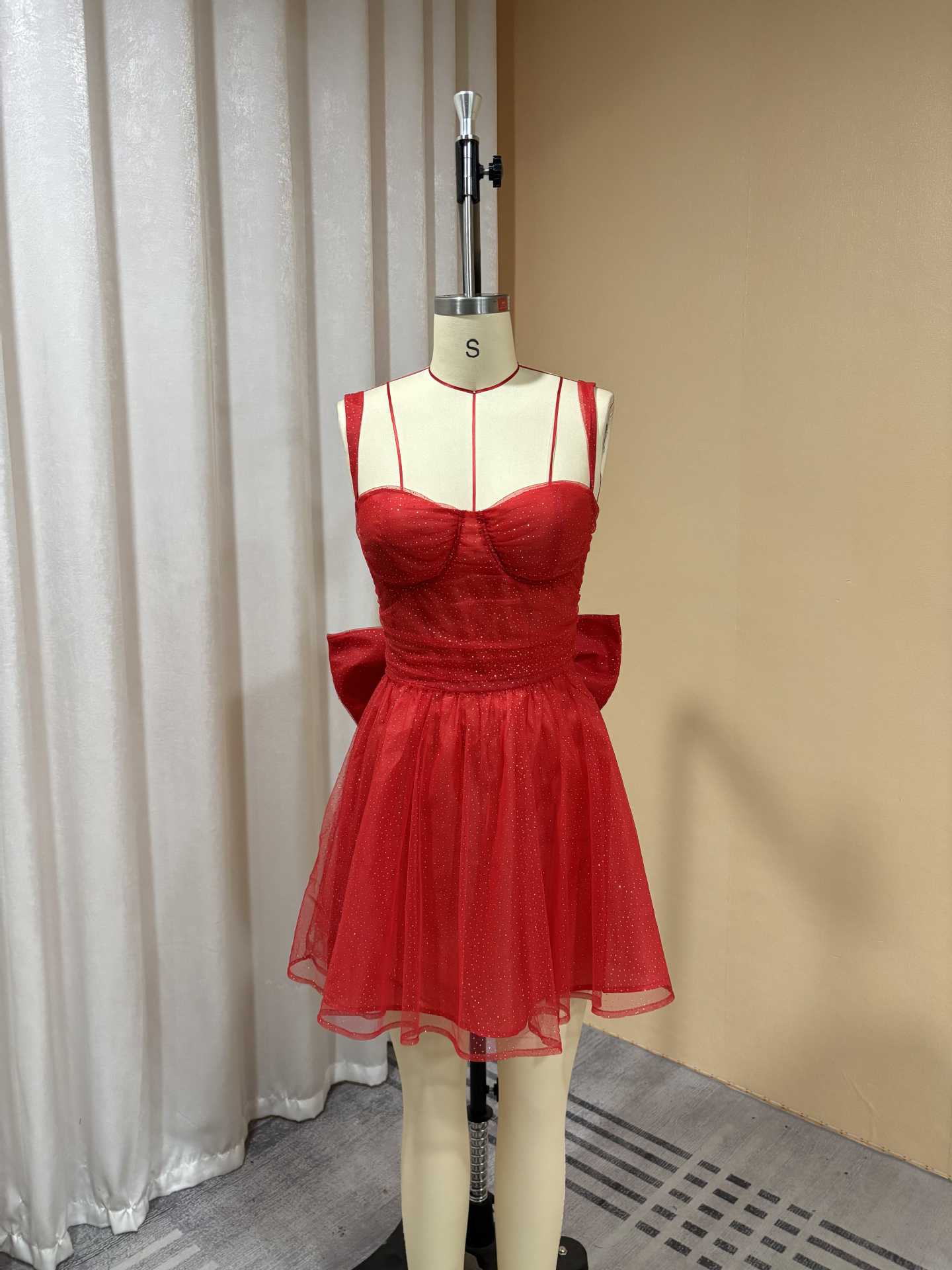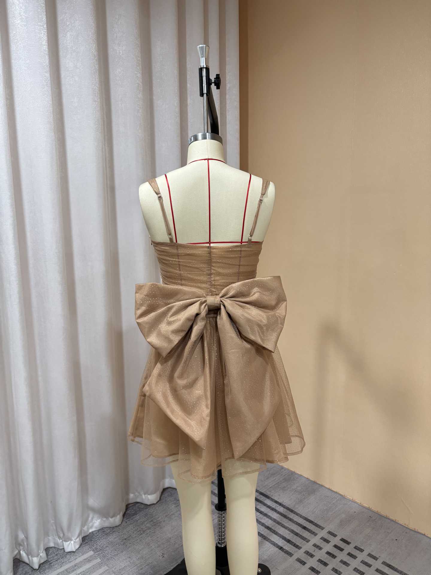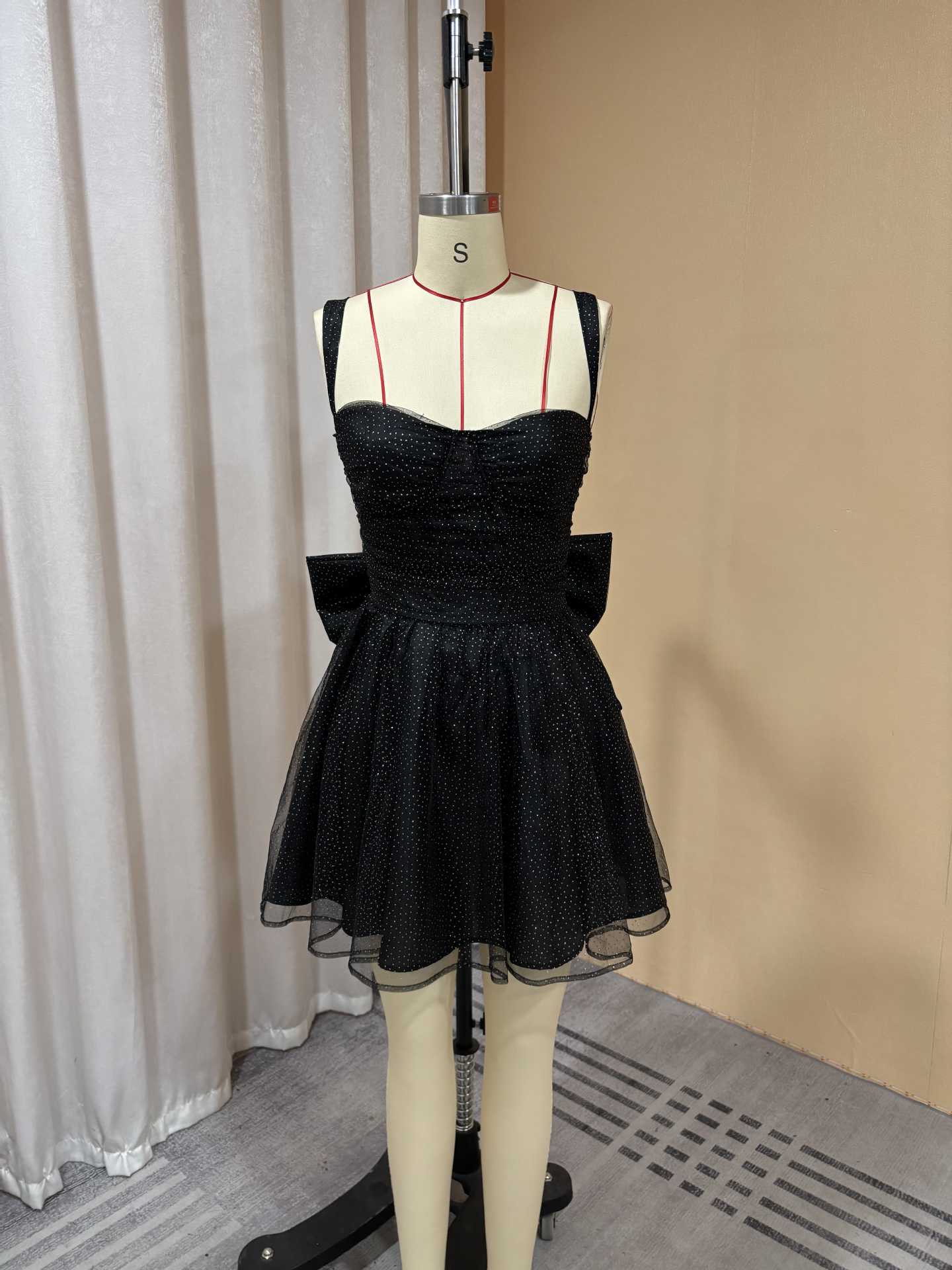 外贸欧美吊带亮片短款小礼服蝴蝶结设计生日宴甜美优雅轻奢连衣裙