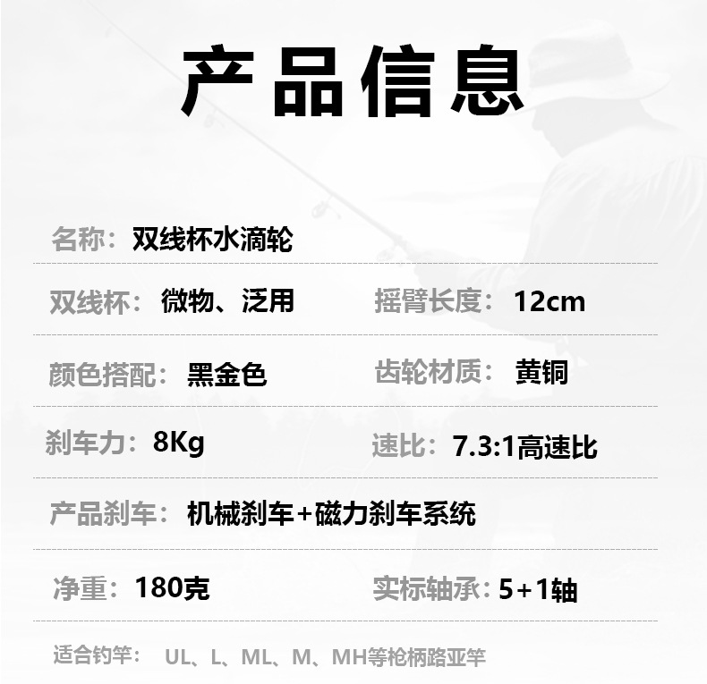 黒武士水滴輪防爆線超軽量遠投磁気ブレーキ微物路亜輪汎用漁線金属魚輪