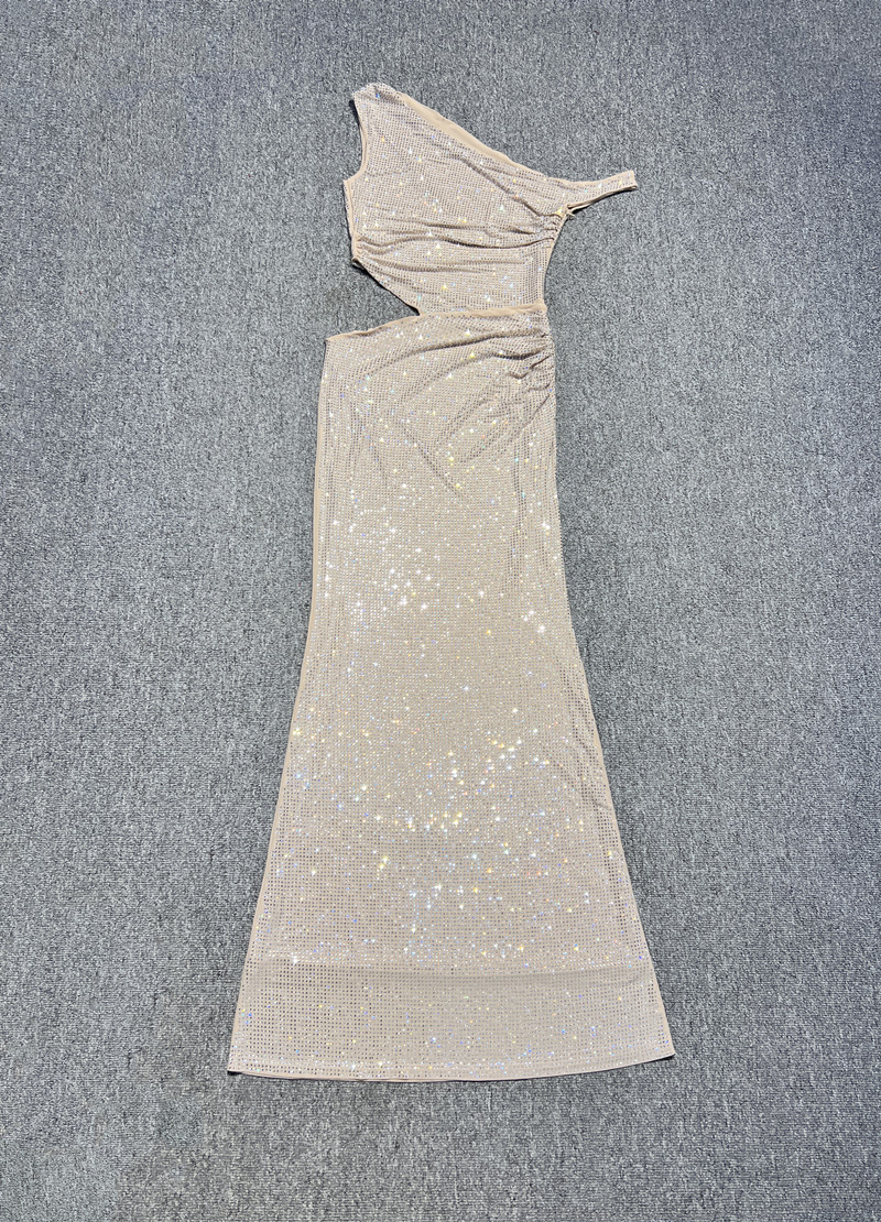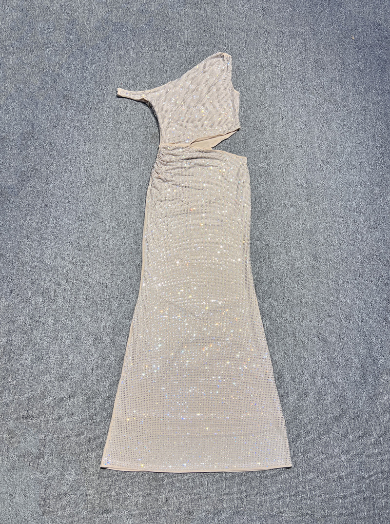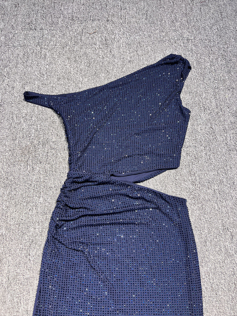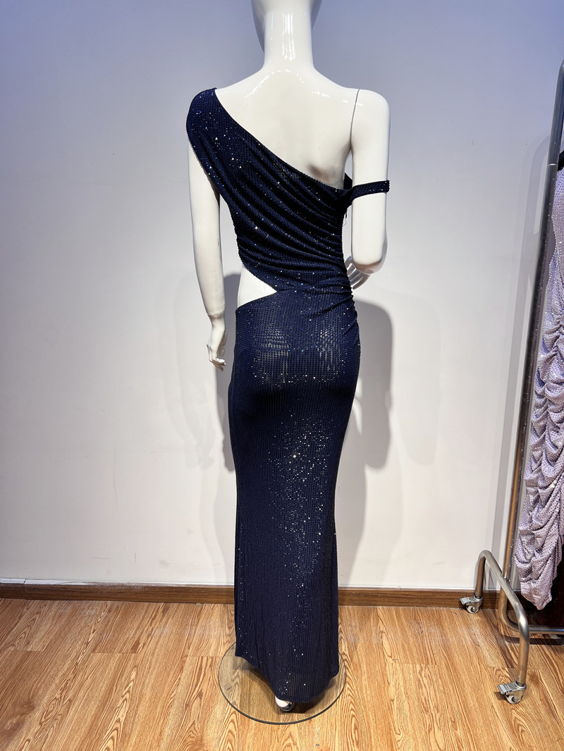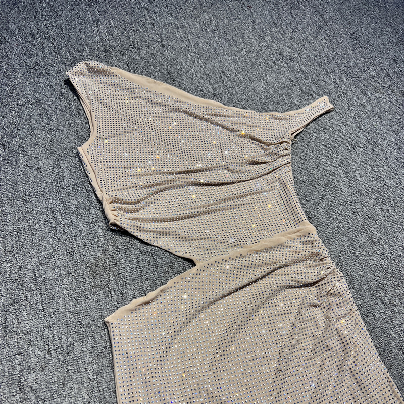 フランスのヘビーデューティーライトラグジュアリーラインストーンオフショルダー中空ハイエンドスパークリングマーメイドロングドレスリッチガールパーティードレス