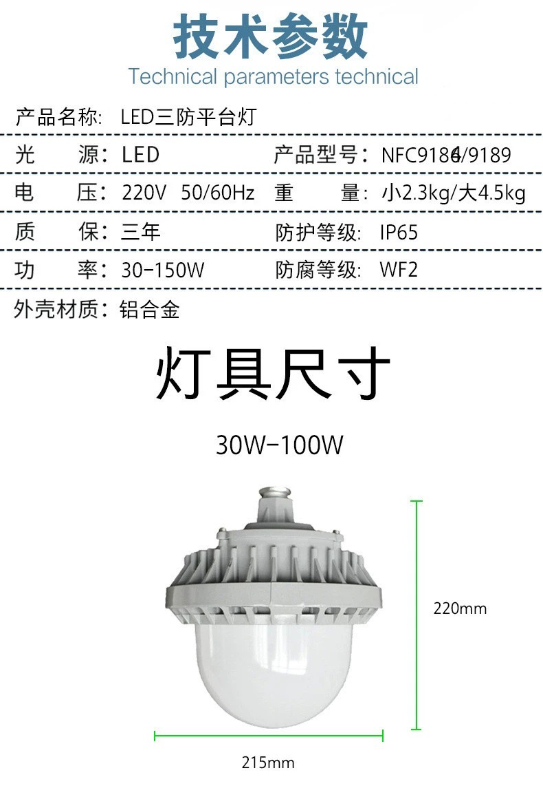 LEDプラットフォームライト、防眩、吊り下げ式、天井取り付け型、防水、防塵、防眩、50ワット、三防照明