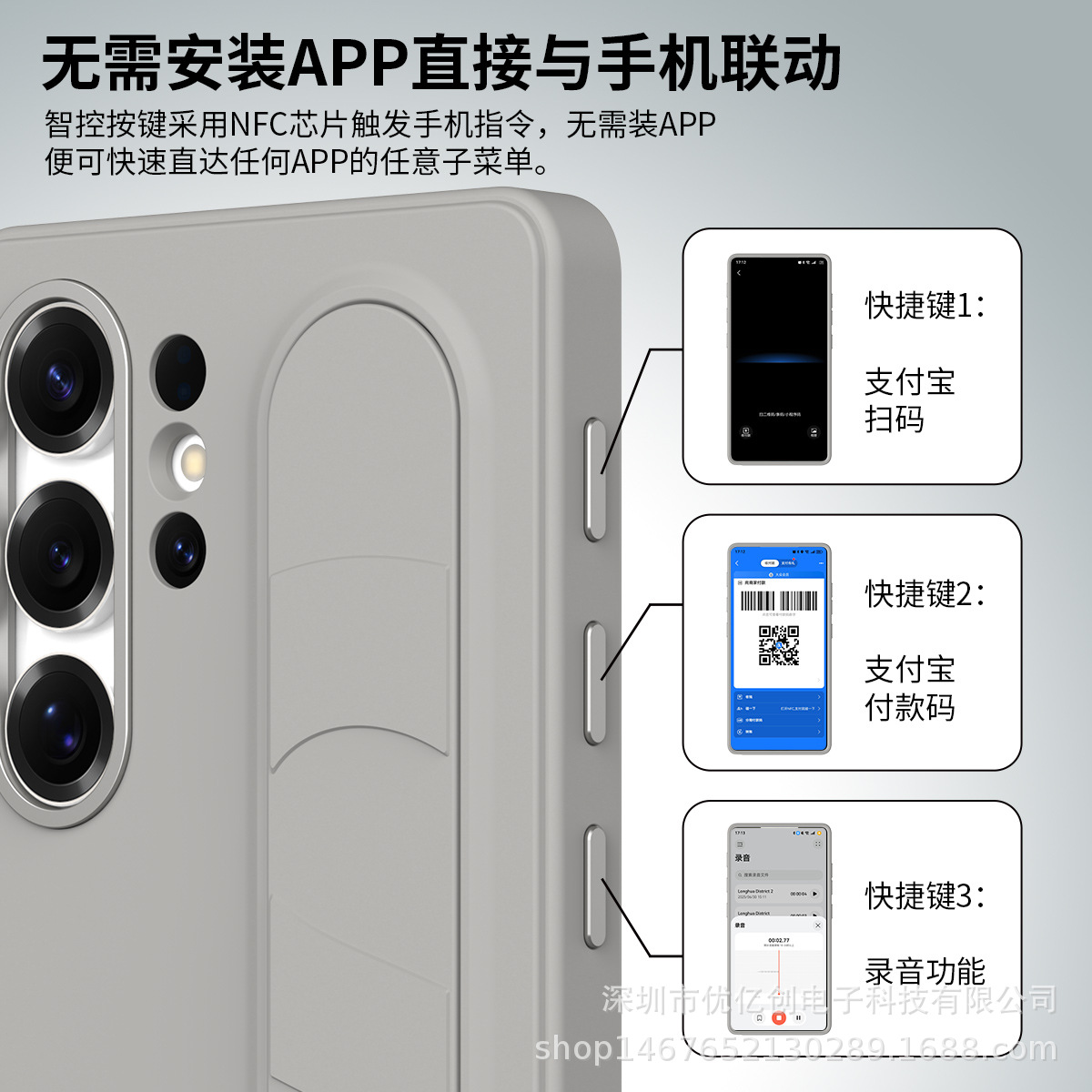 智能按键适用三星s25U手机壳腕带磨砂s24+全包保护套腕带支架壳