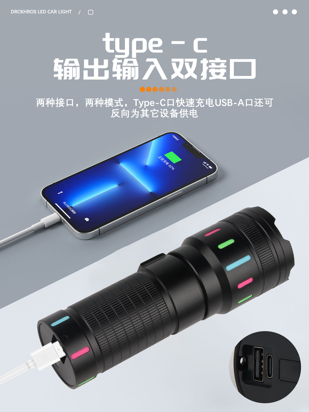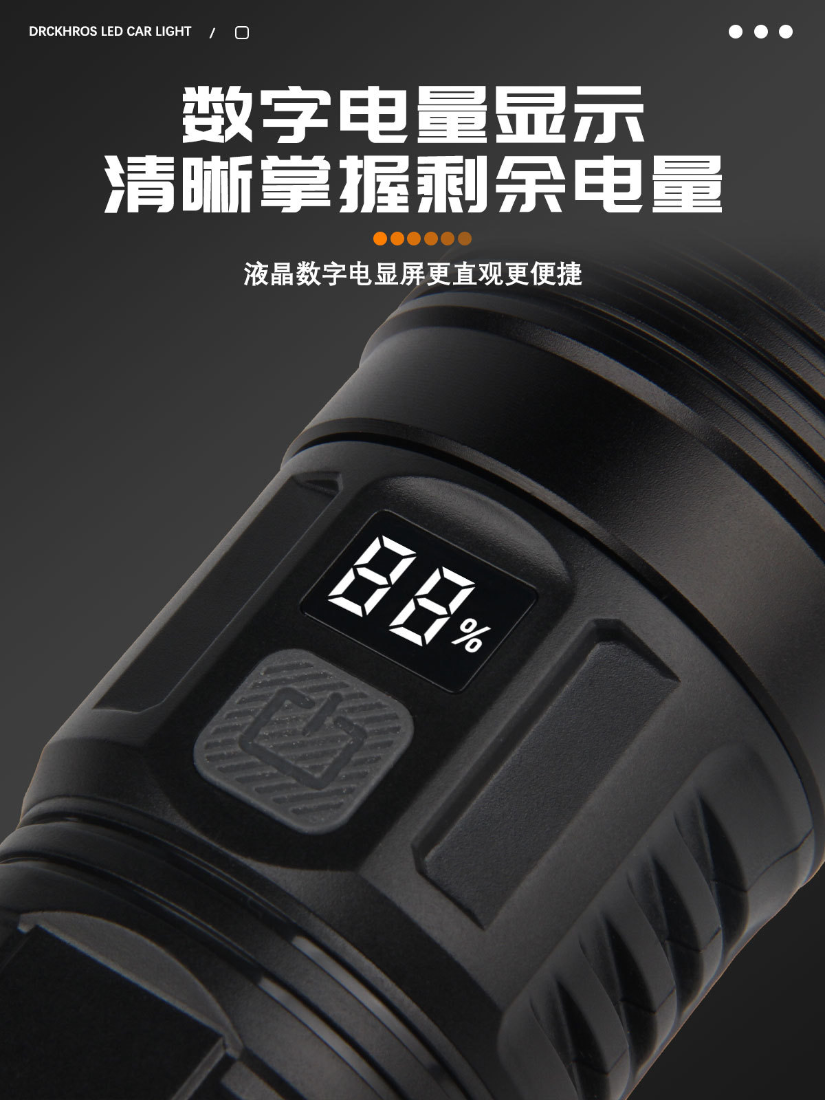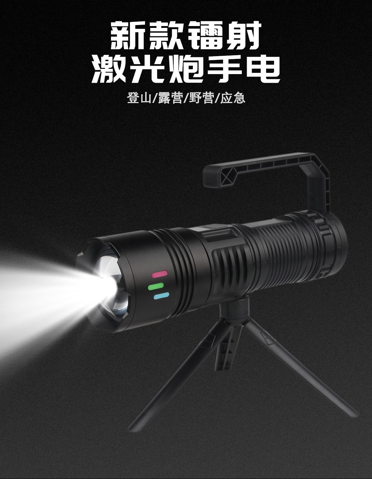 屋外強光白レーザーアルミ合金懐中電灯帯出力デジタルTYPE-C充電小鋼砲懐中電灯