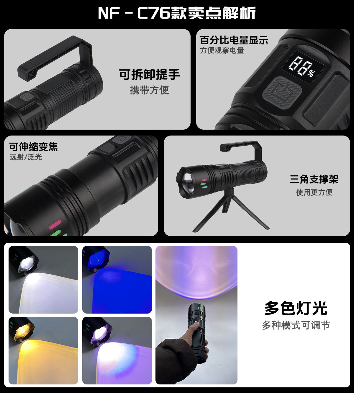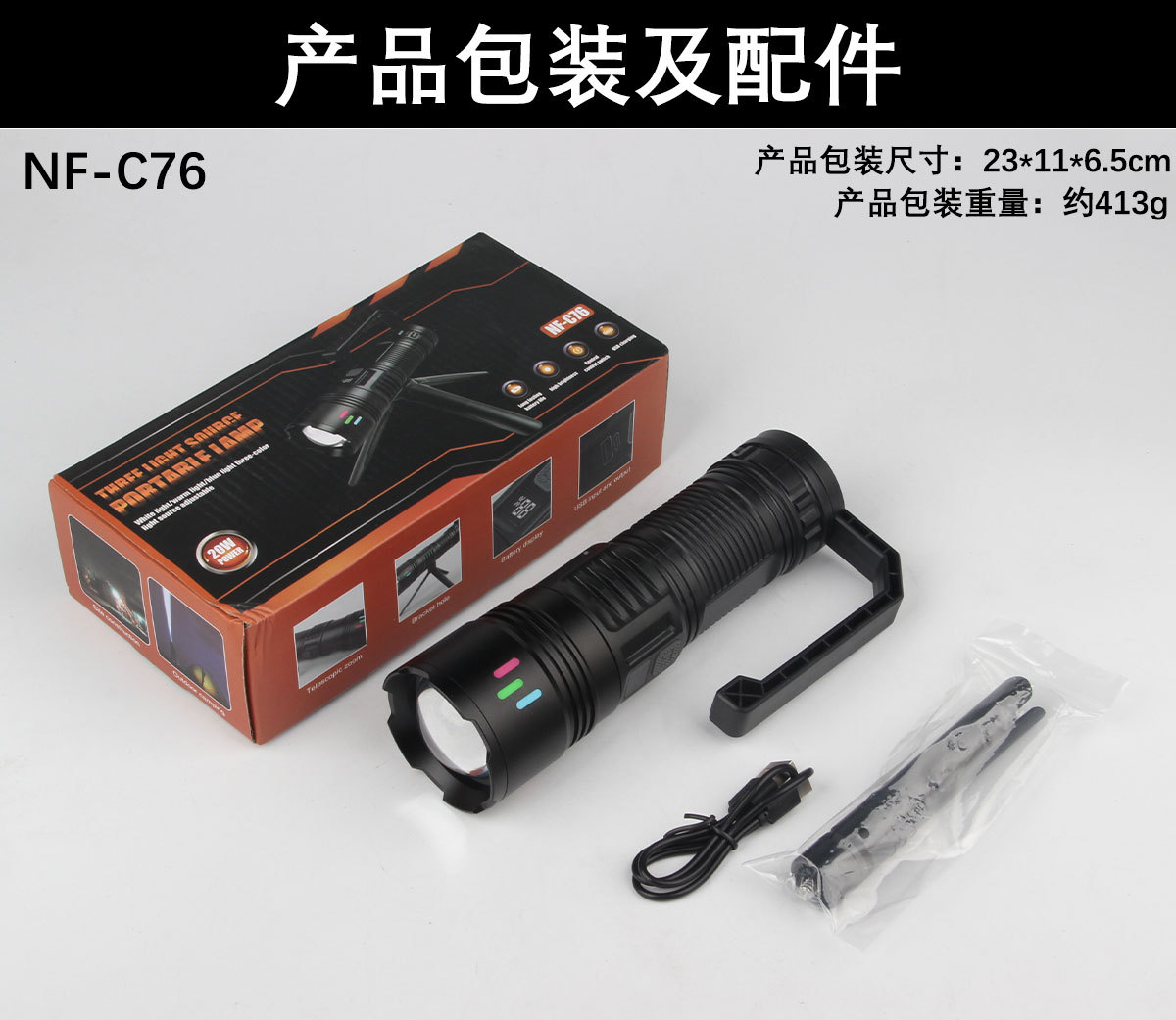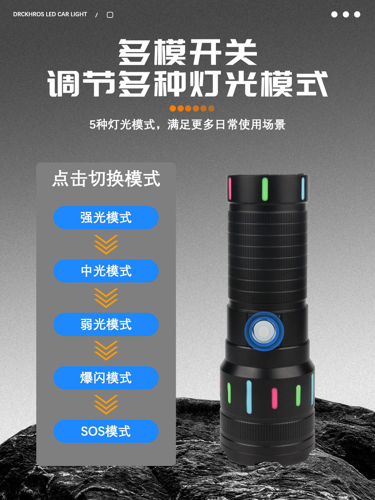 屋外強光白レーザーアルミ合金懐中電灯帯出力デジタルTYPE-C充電小鋼砲懐中電灯