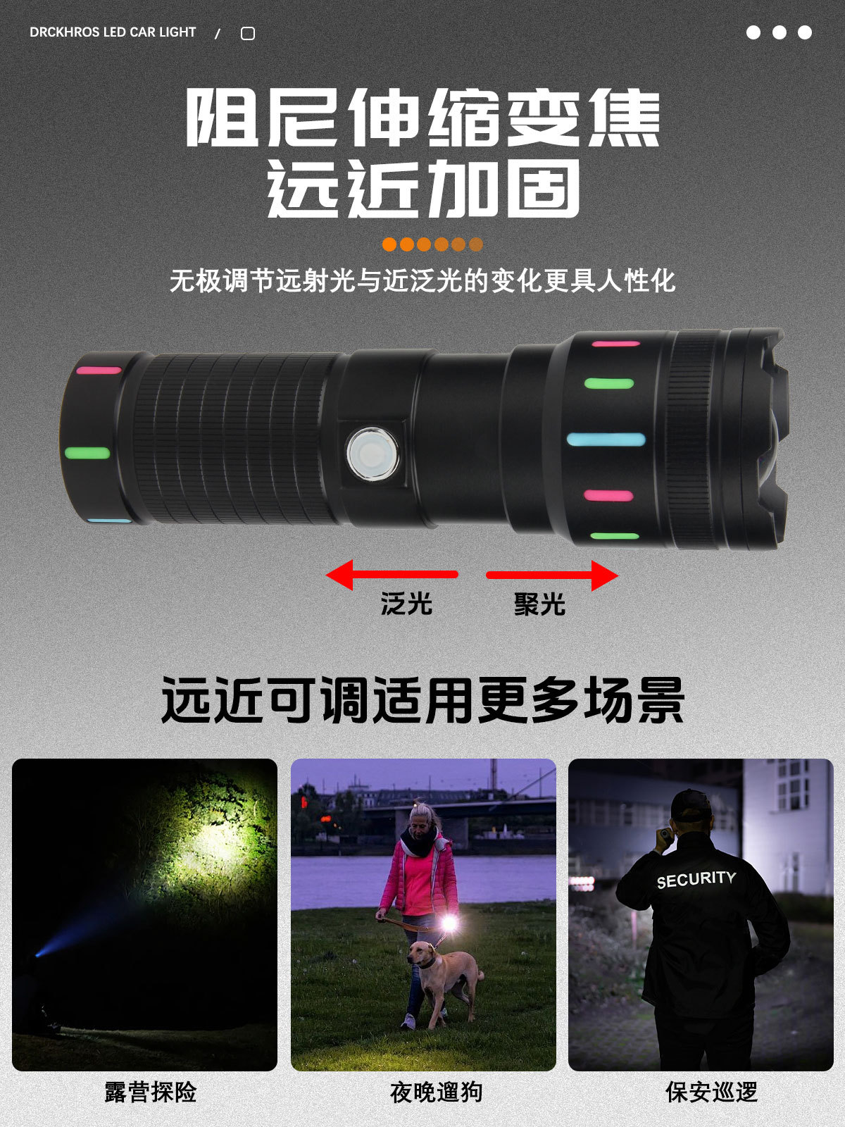 白色集光懐中電灯、伸縮ズーム式、屋外用超高輝度小型強力懐中電灯、手持ち式、長距離照射、夜間発光、高耐久性
