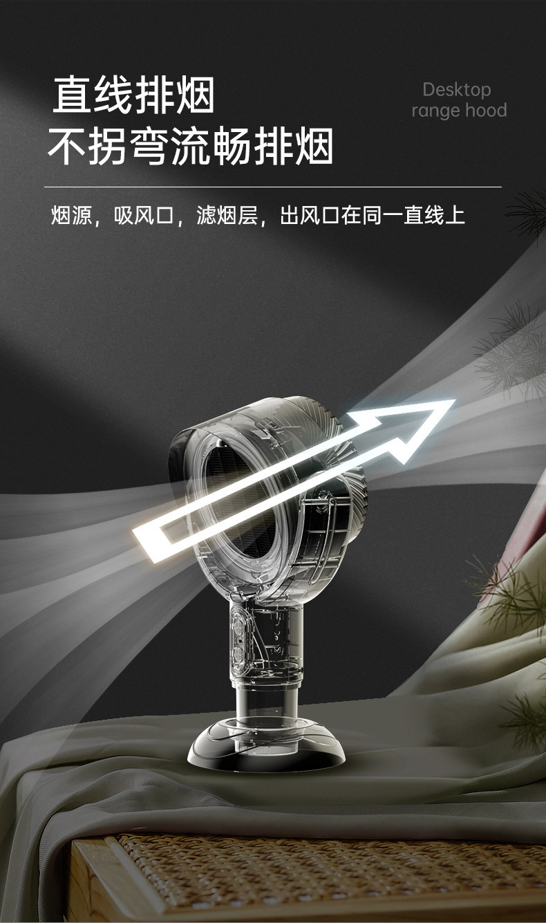 クロスボーダーデスクトップレンジフード家庭用デスクトップ喫煙機マイナスイオン空気浄化油汚れ大吸引吸引喫煙機