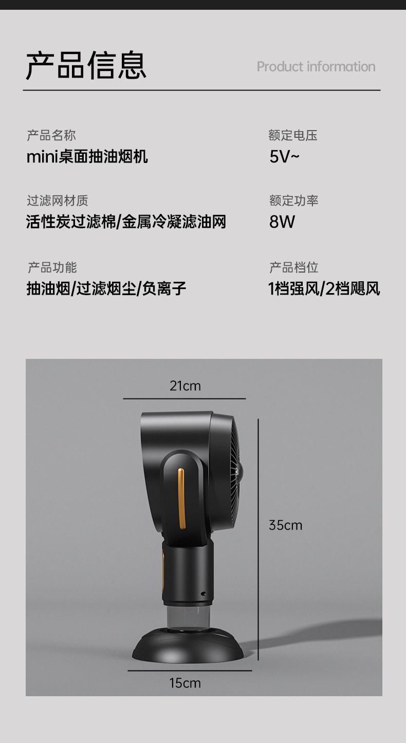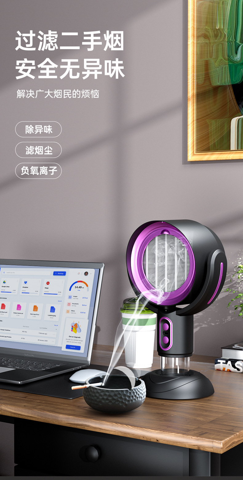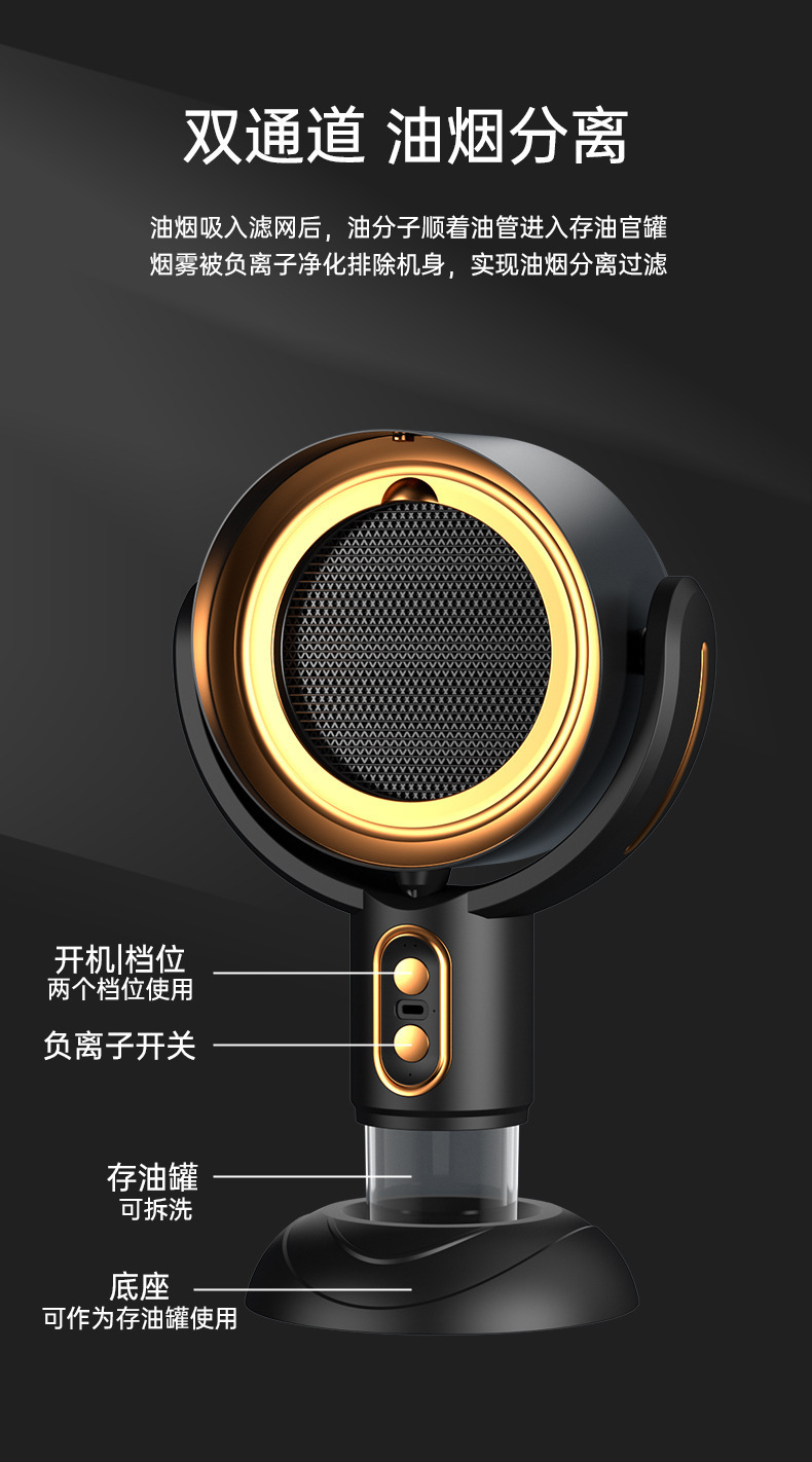 クロスボーダー新型レンジフードミニ家庭用デスクトップ油煙フィルターマイナスイオン油煙清浄機喫煙機