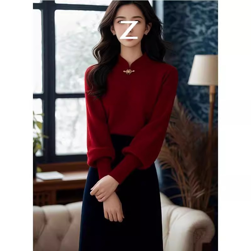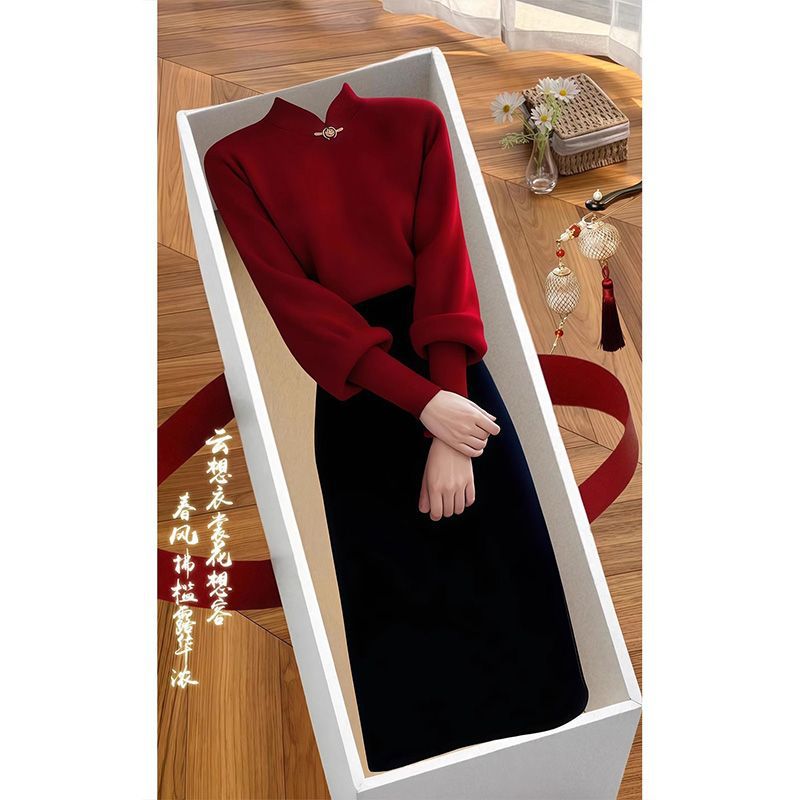 冬季穿搭一整套感新中式新年针织时尚上衣显瘦半身裙两件套