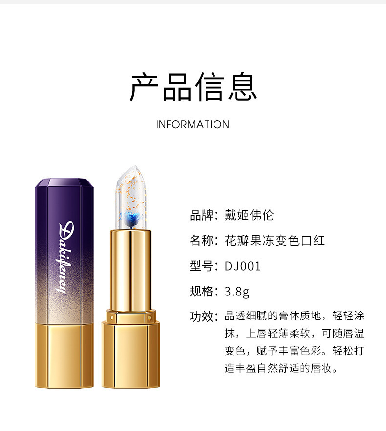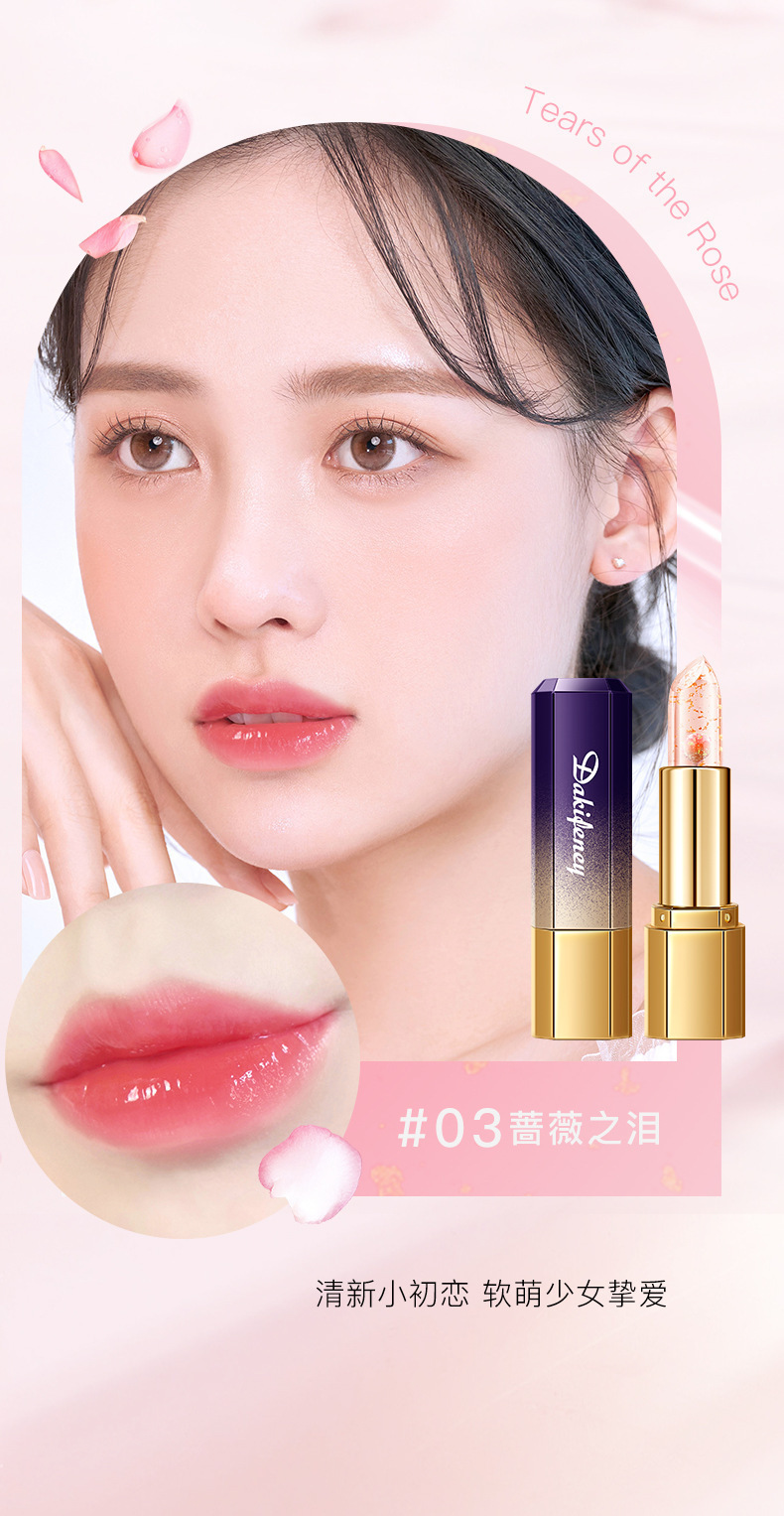 戴姬佛伦花瓣果冻变色口红滋润保湿修护干裂不掉色不沾杯厂家直销