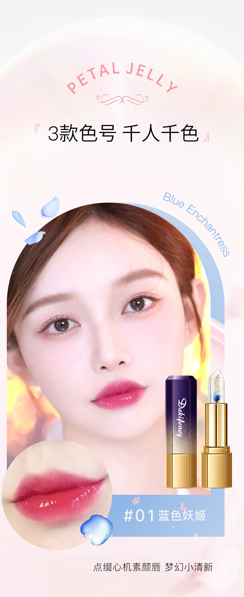 Dai Jiflon 花びらゼリー色が変わる口紅保湿と修復乾燥ひび割れ非退色ノンスティックカップ温度変化口紅