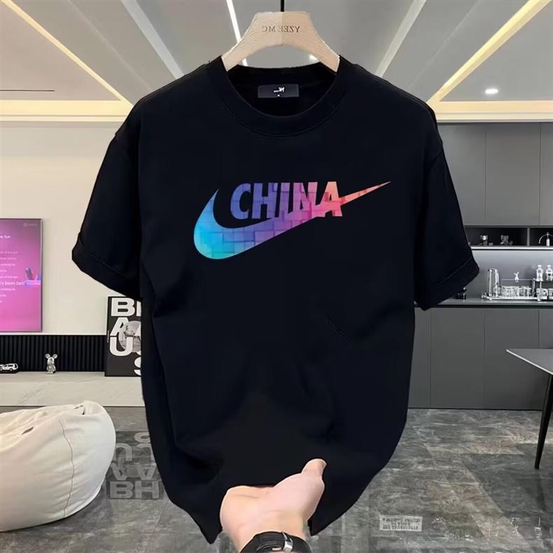 2025重ポンド半袖tシャツ男性タイプ夏ファッショントレンドゆるい男性服アメリカ大サイズ学生思いやり