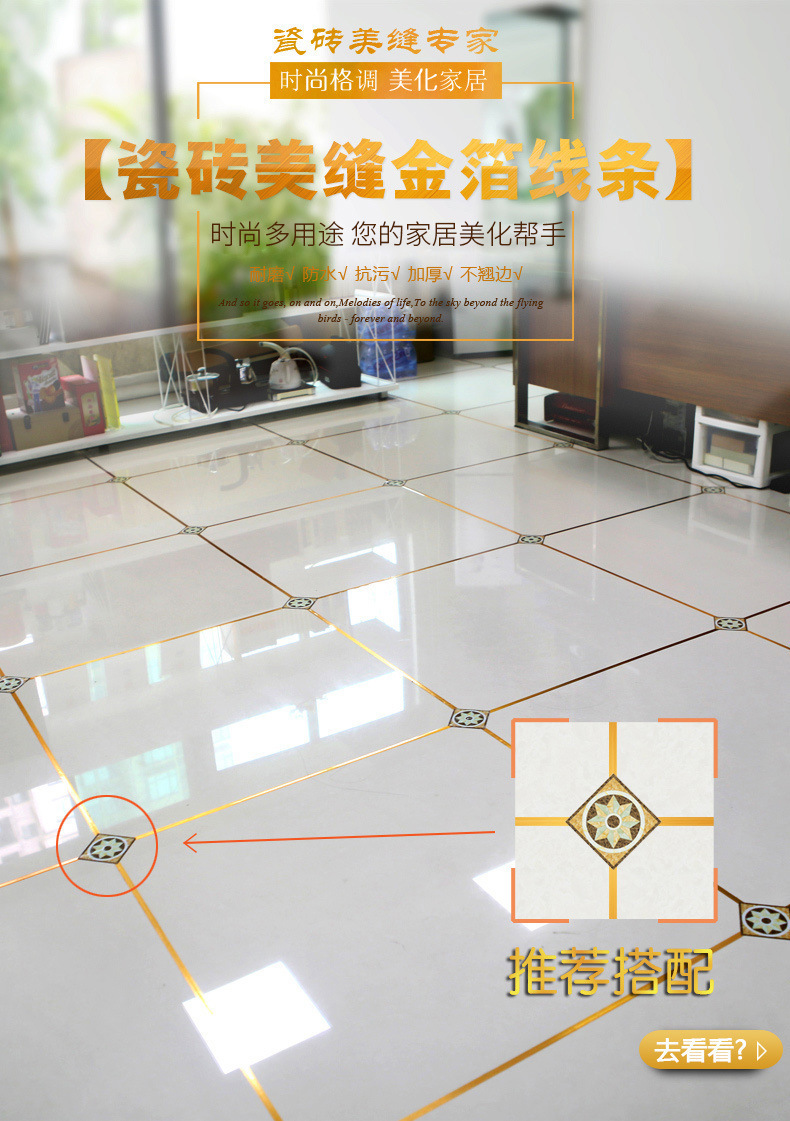 自粘美缝贴条客厅瓷砖缝隙礼品盒美缝线条防油防水拉丝金银装饰条