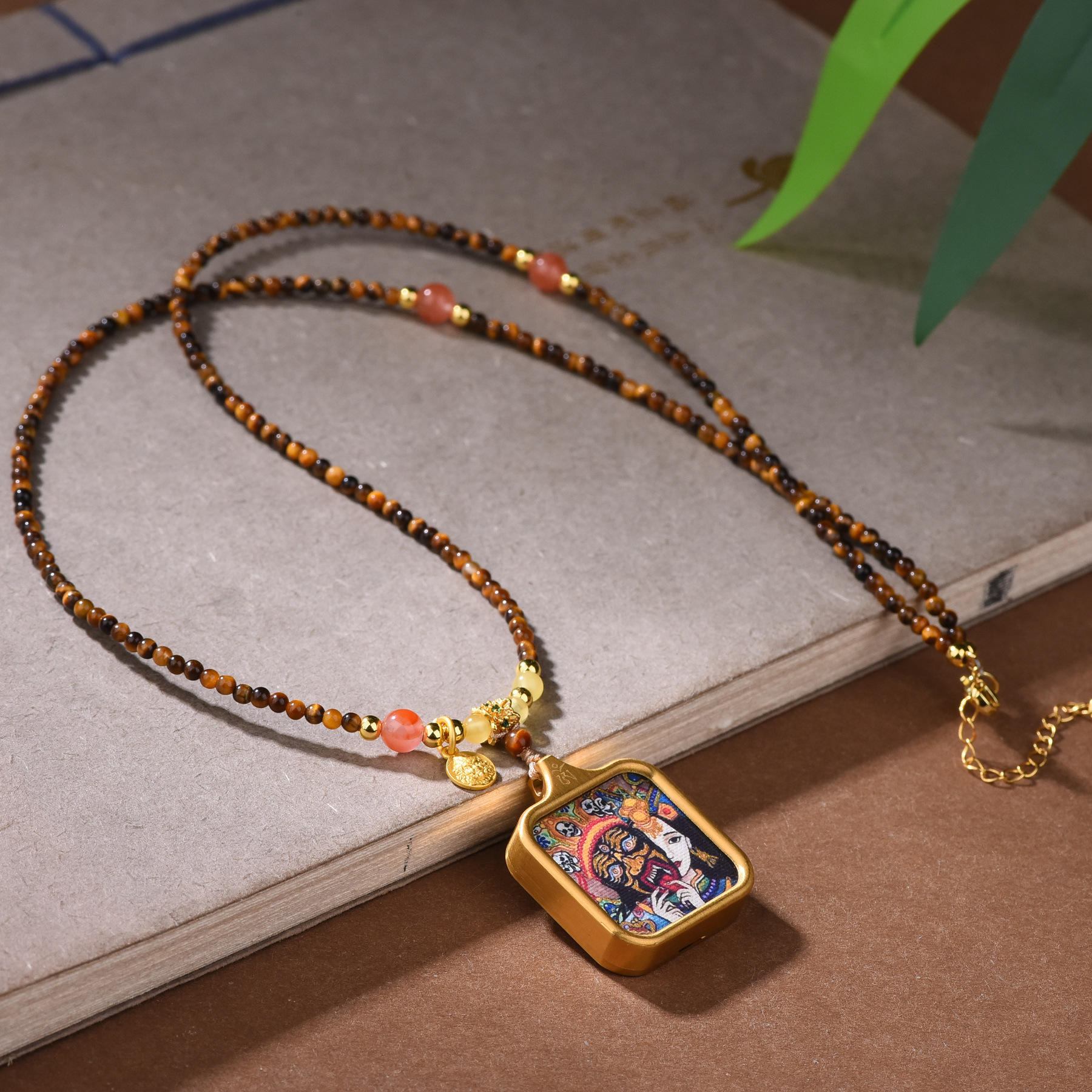 新中国式レトロ天然虎眼石ネックレスザキラム唐カード吊り下げロープ国潮軽豪華セーターチェーンアクセサリー