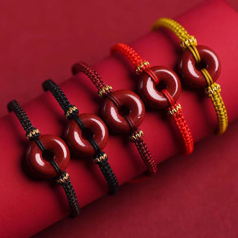 卸売り朱砂紫金砂平安ボタン男女カップル金本命年編み幸運紅手紐シンプルブレスレット